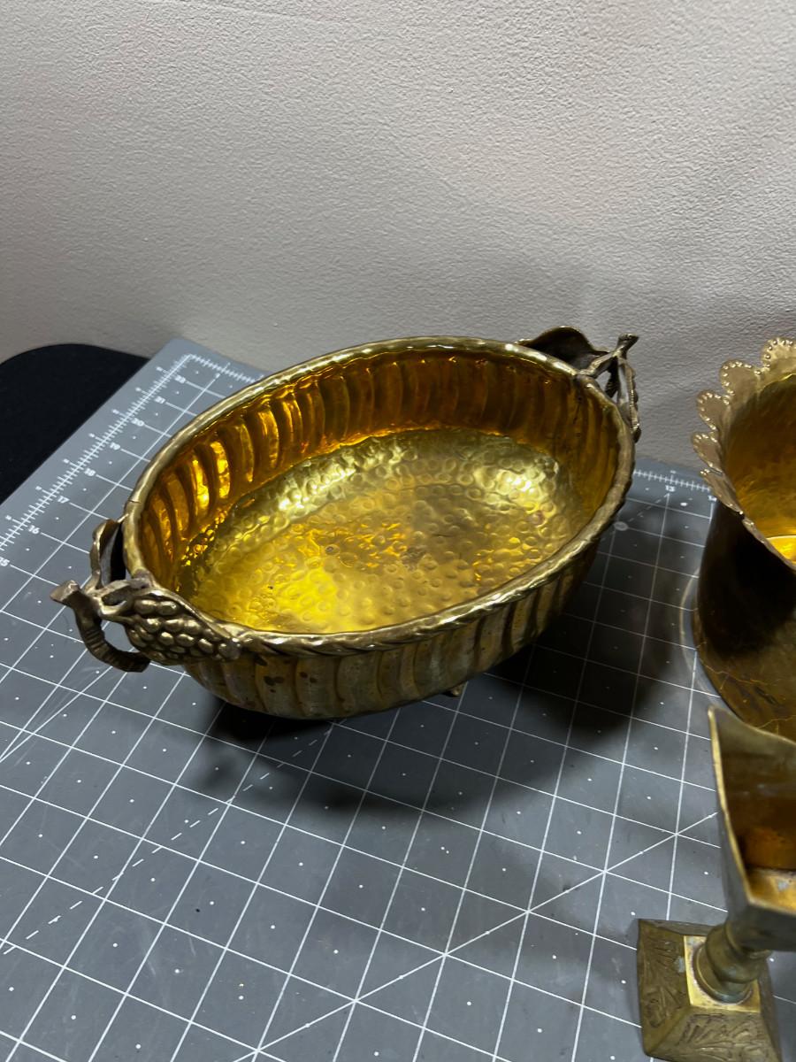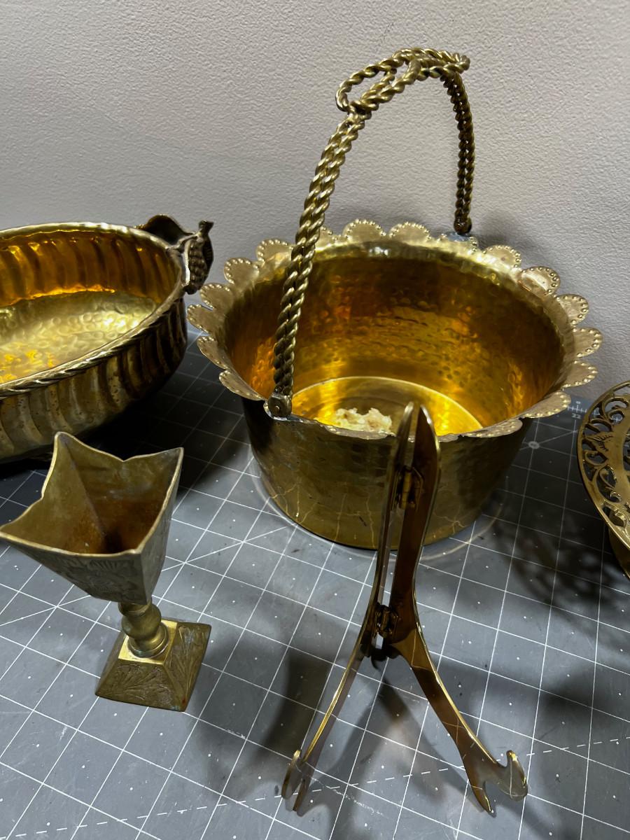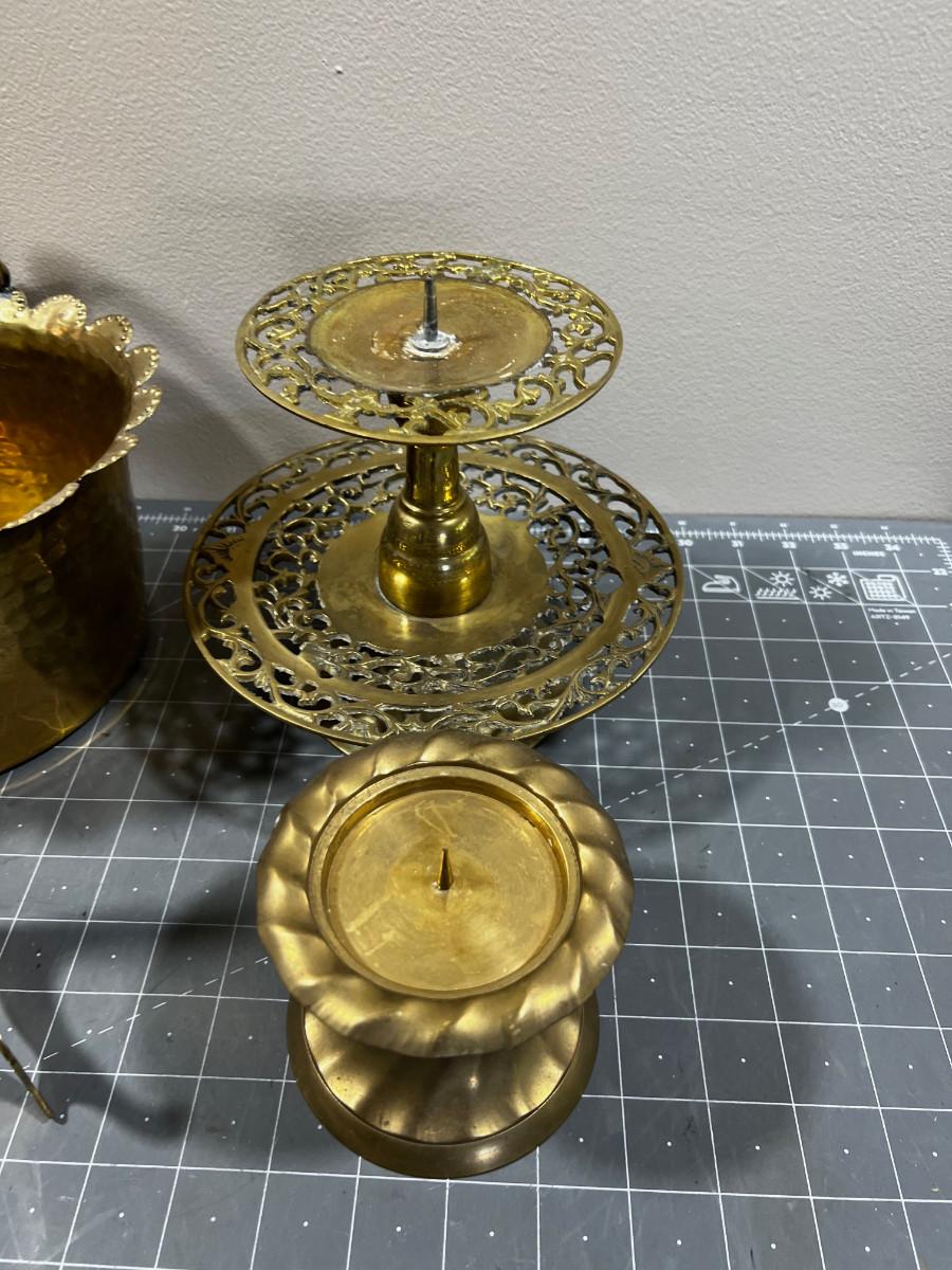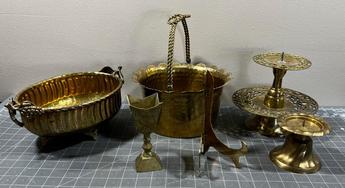 Lot of Brass: Bucket, Frame Holder, Candle Sticks etc.