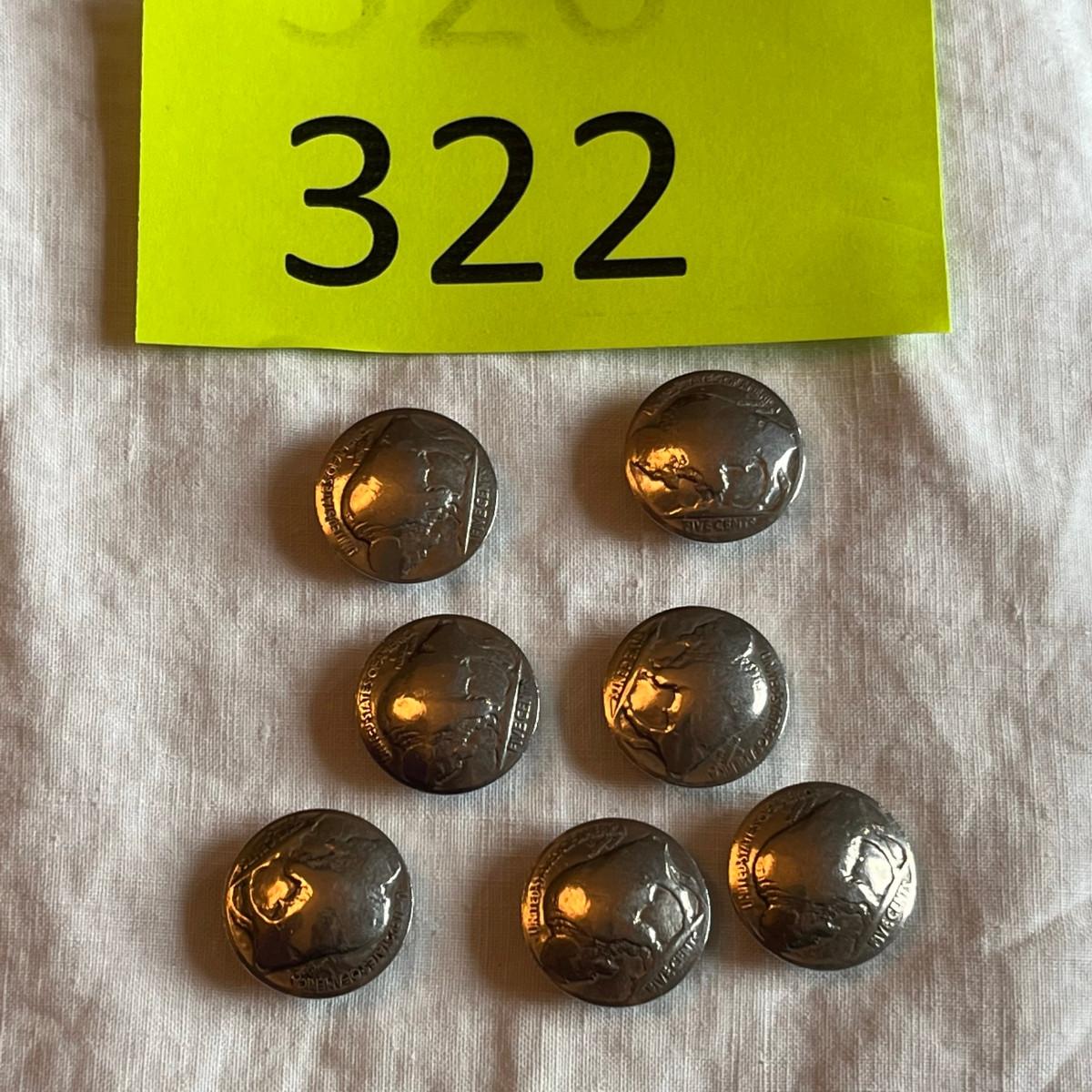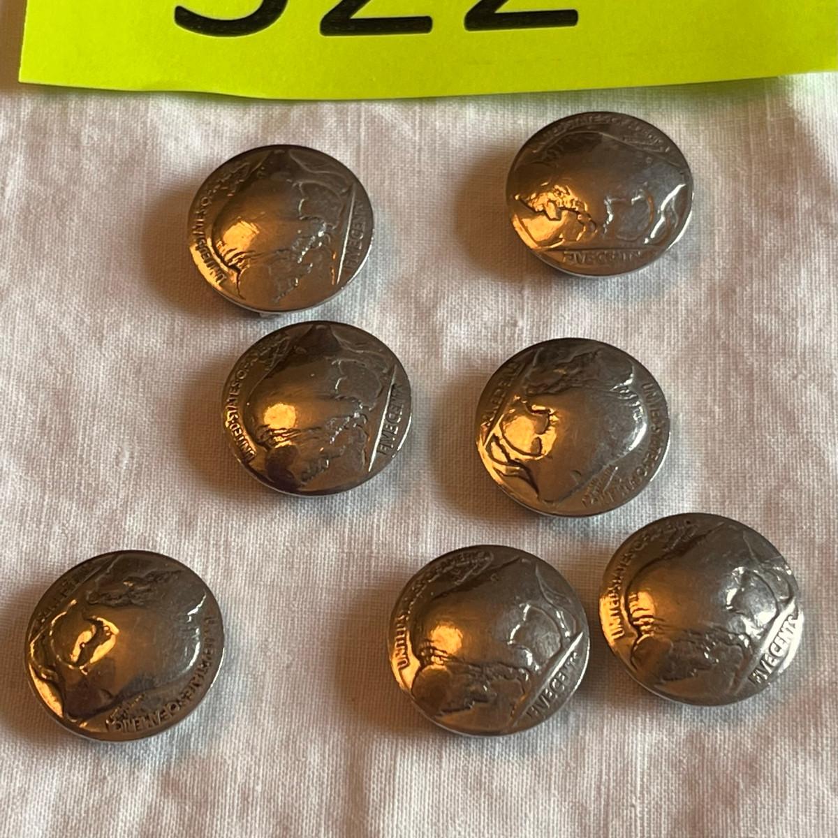 7 button covers. Buffalo nickles, domed. Pretty cool 1990s Country look!
