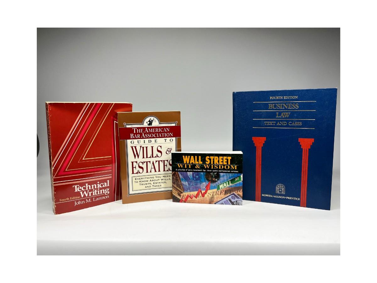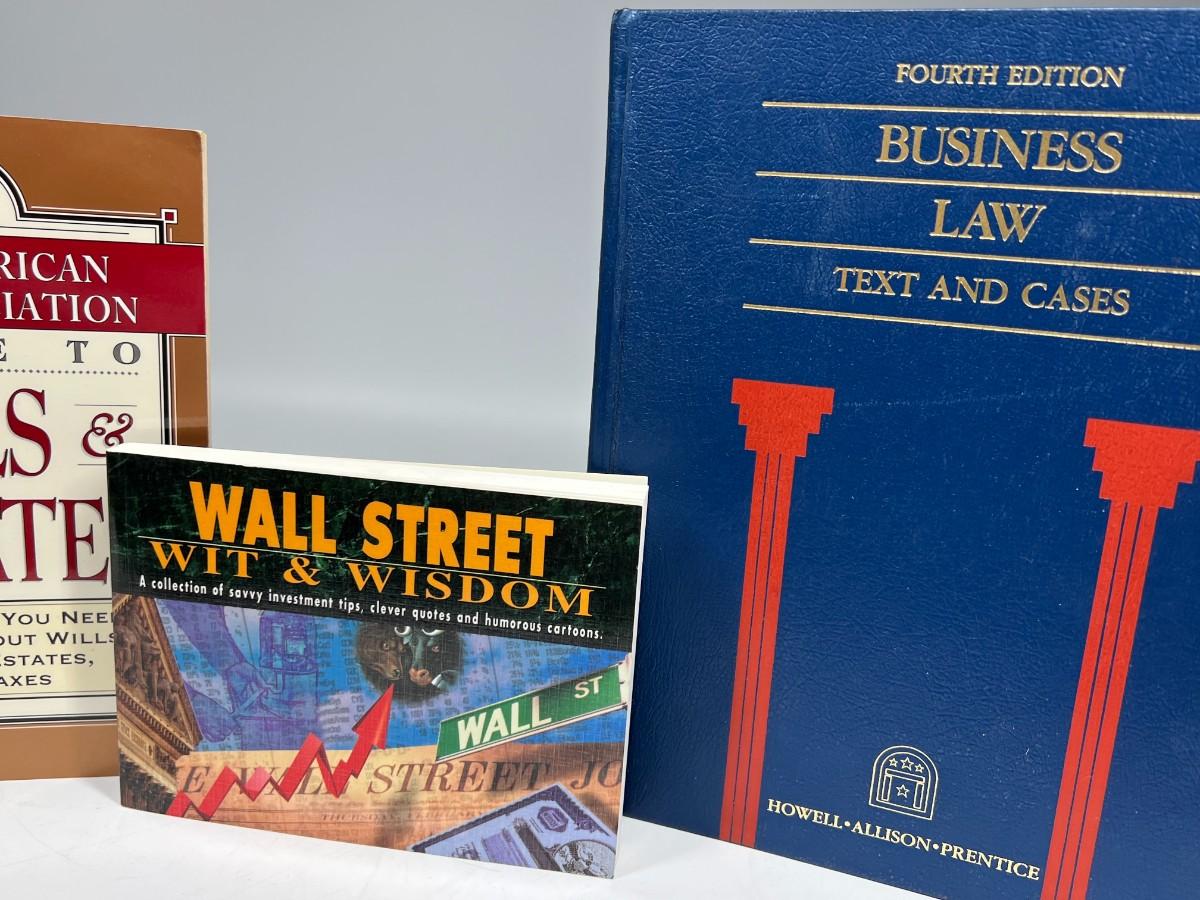 Lot of Business Books Business Law, Wall Street Wit & Wisdom, Wills and Estates & More