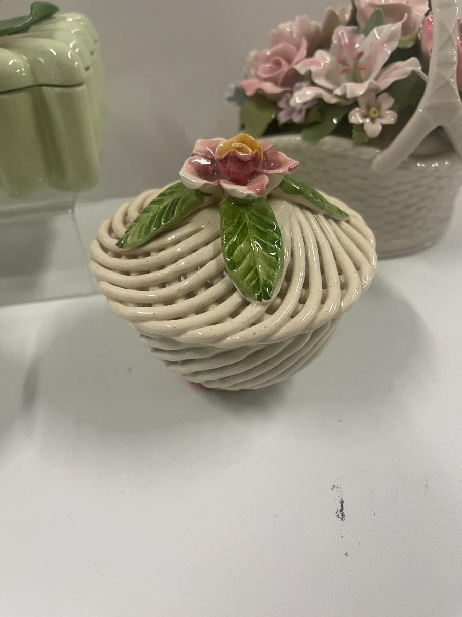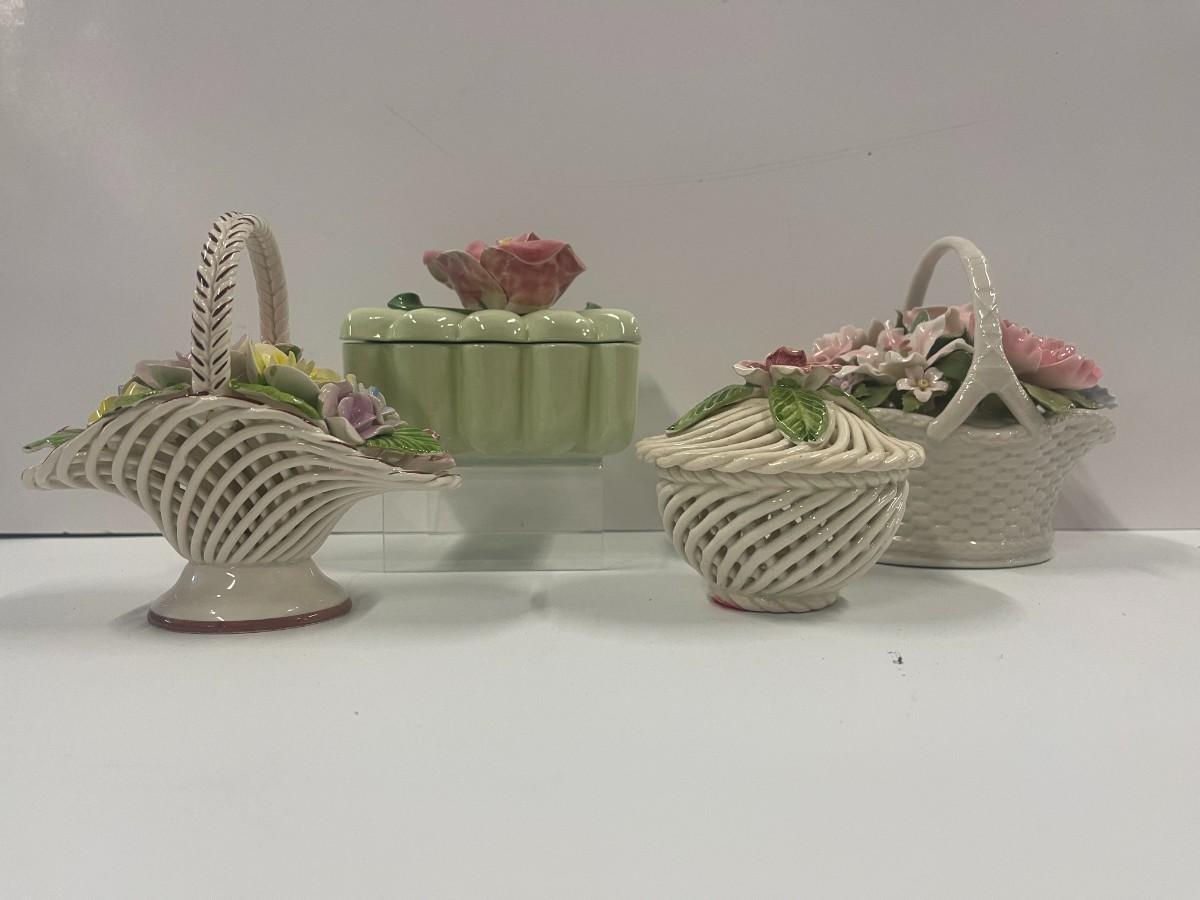 Lot of Capodimonte Style Porcelain Flower Baskets & Trinket Boxes