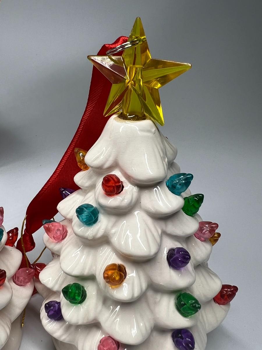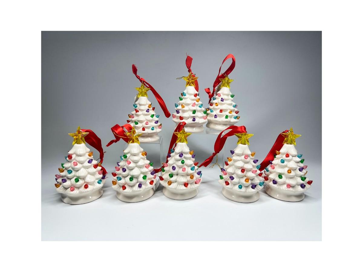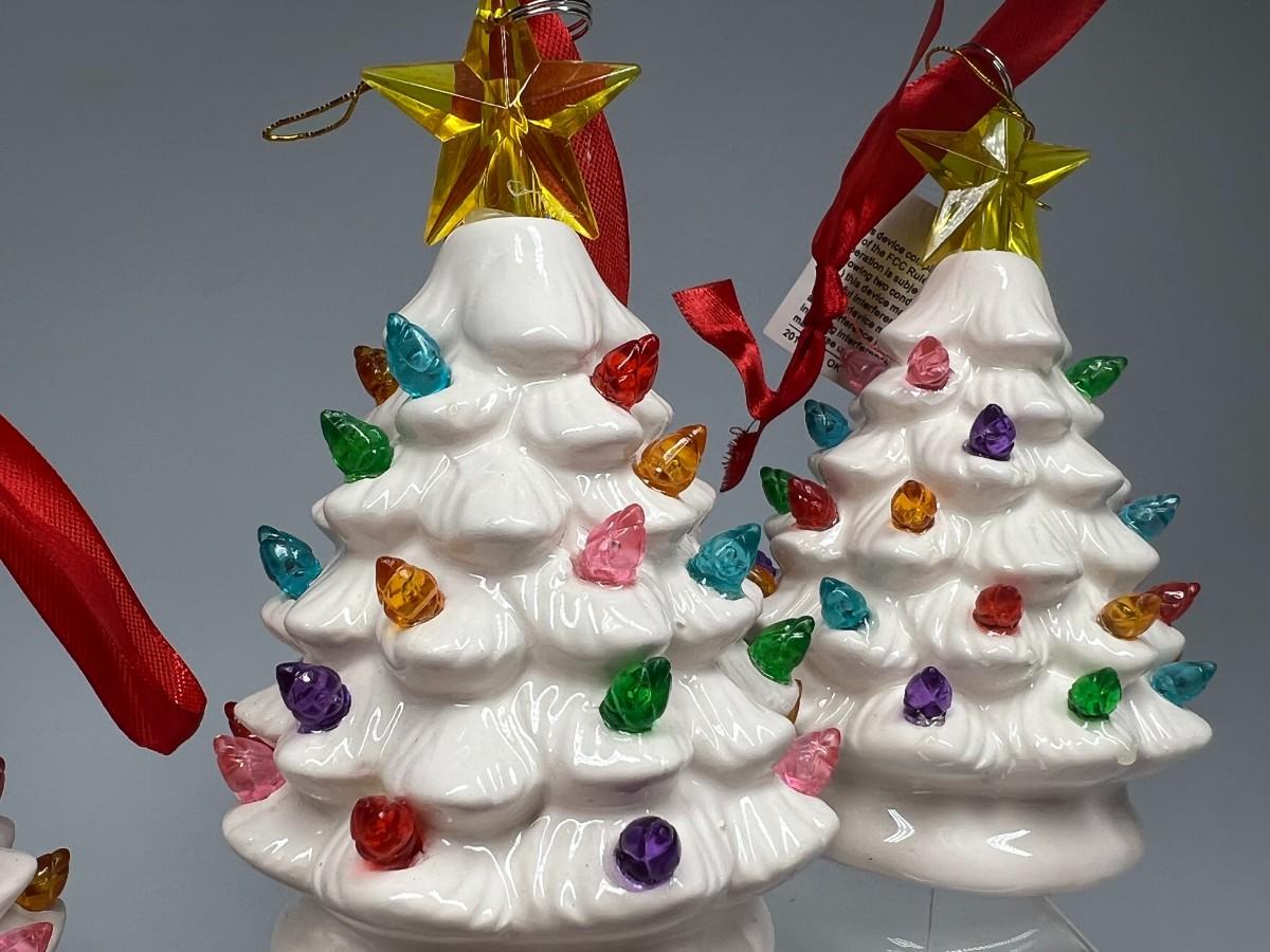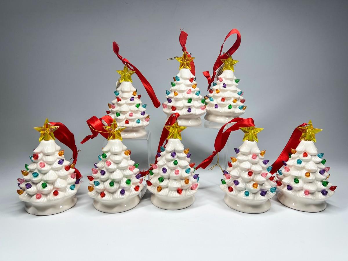 Lot of Northeast Home Goods Ceramic and Plastic Battery Operated Hanging Light Up Christmas Trees