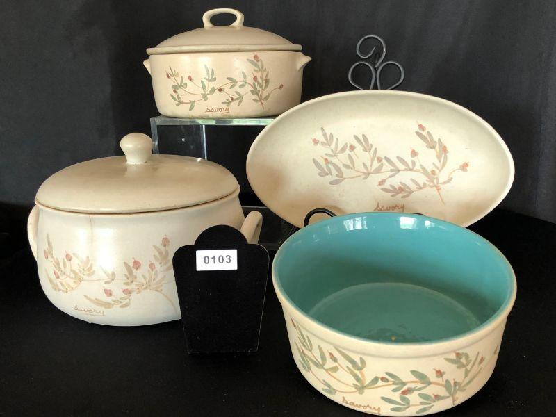Lot of Chatham Pottery Casserole Dishes, Platter- 4 Pcs "Tree of Life Pattern" Item # 103