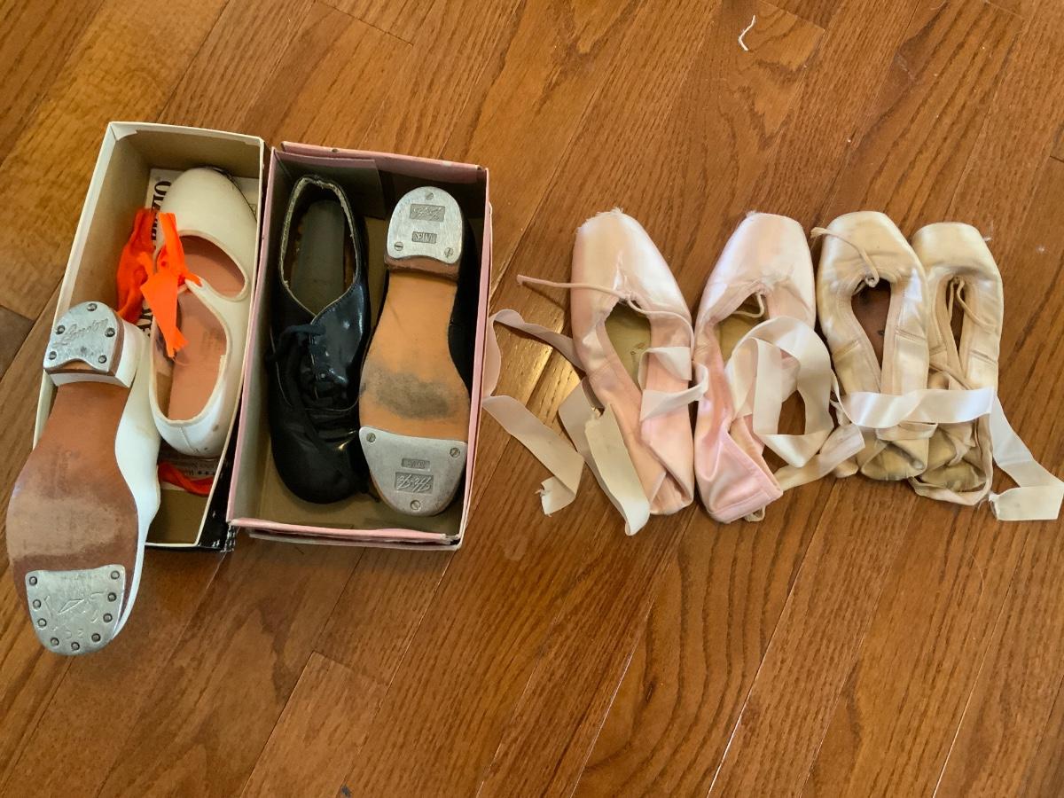 Lot Of Childs Ballet and Tap Shoes. White tap shoes marked 9 1/2. All others no sizing visable