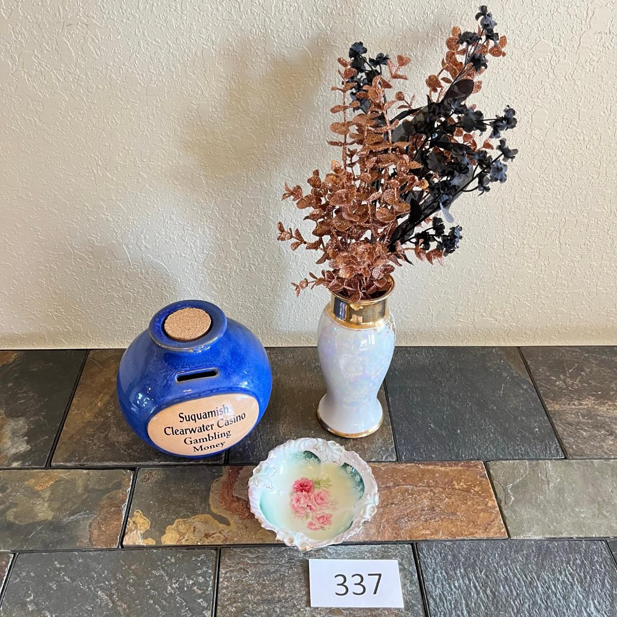 Piggy bank is from a casino. The little roses bowl is RS Prussia!!!