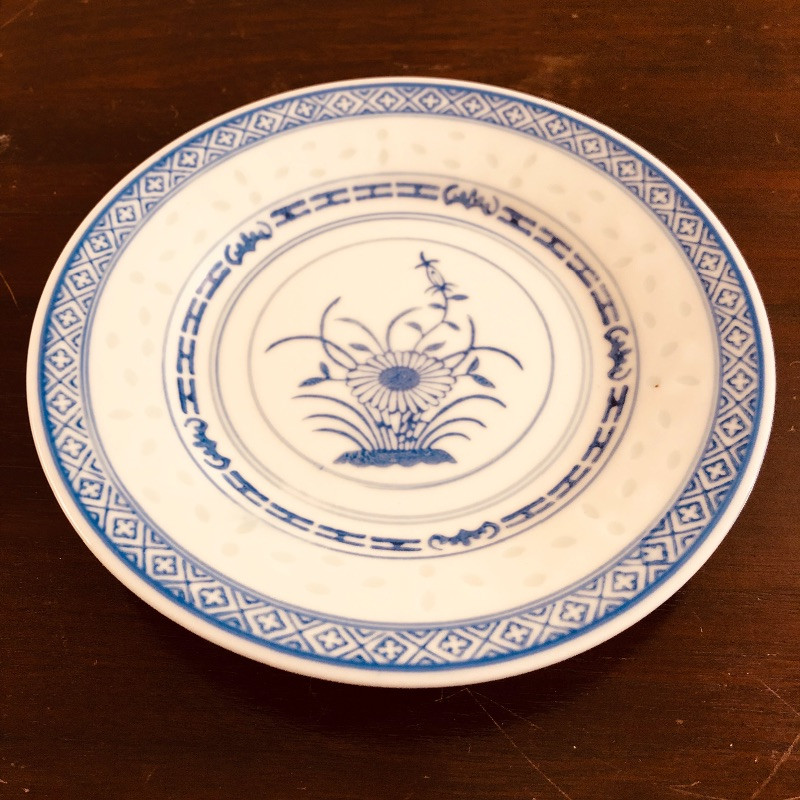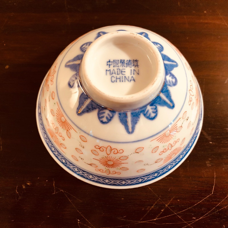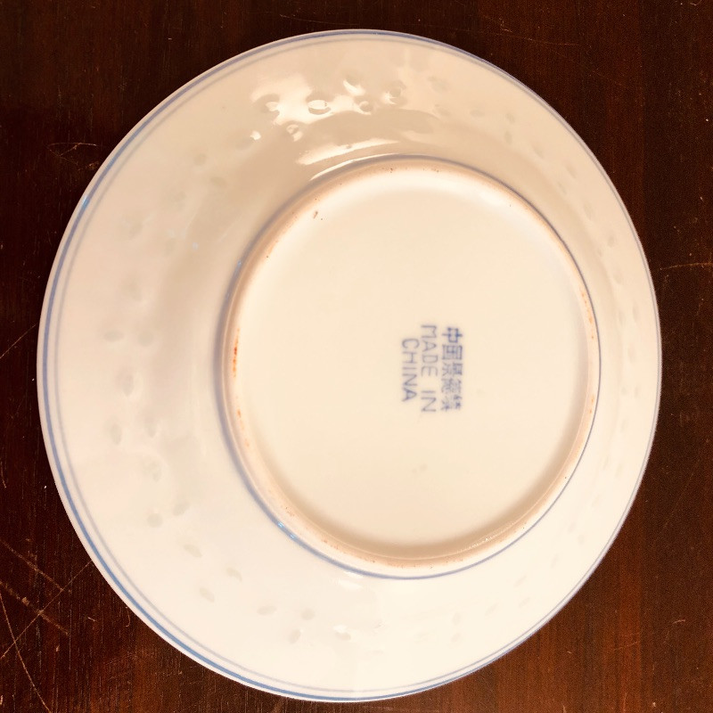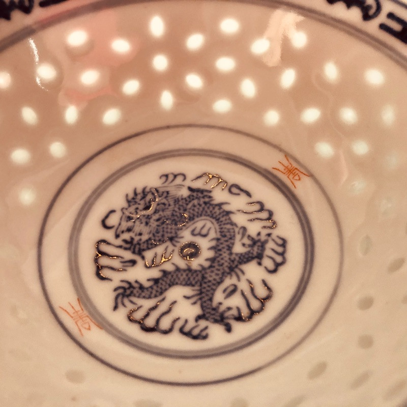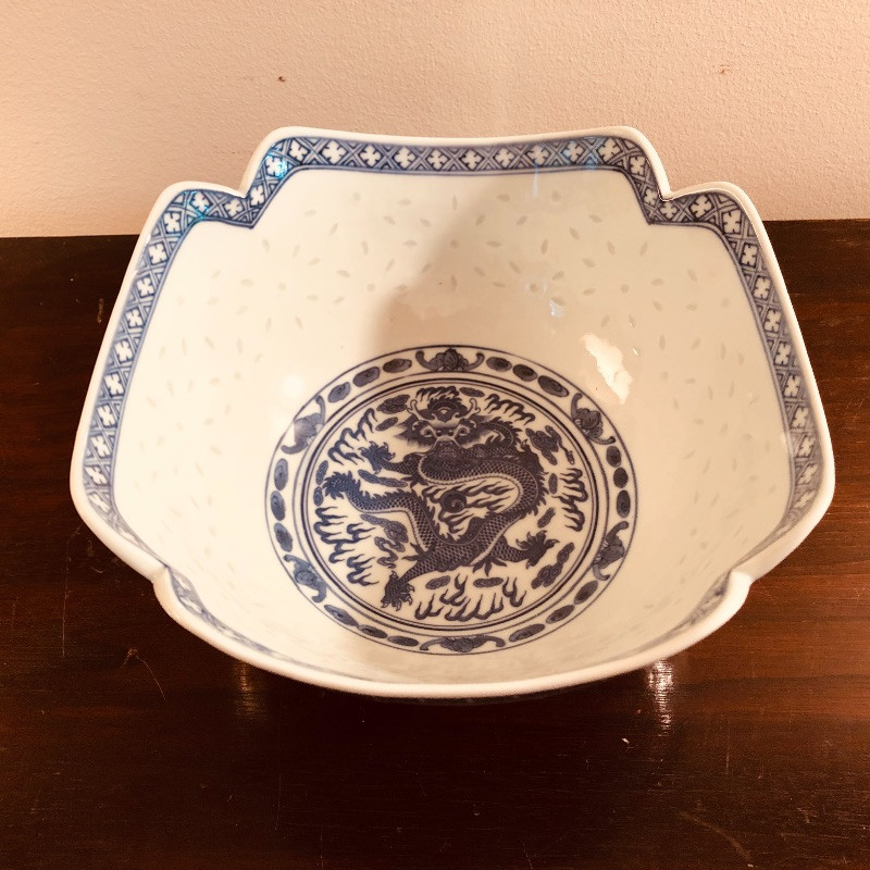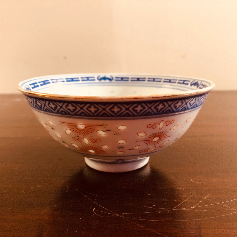 Tw 9” serving bowls, one 9”soup bowl, four rice bowls 4-1/2”, 3 small plates with reticulated pattern on edges of plates.