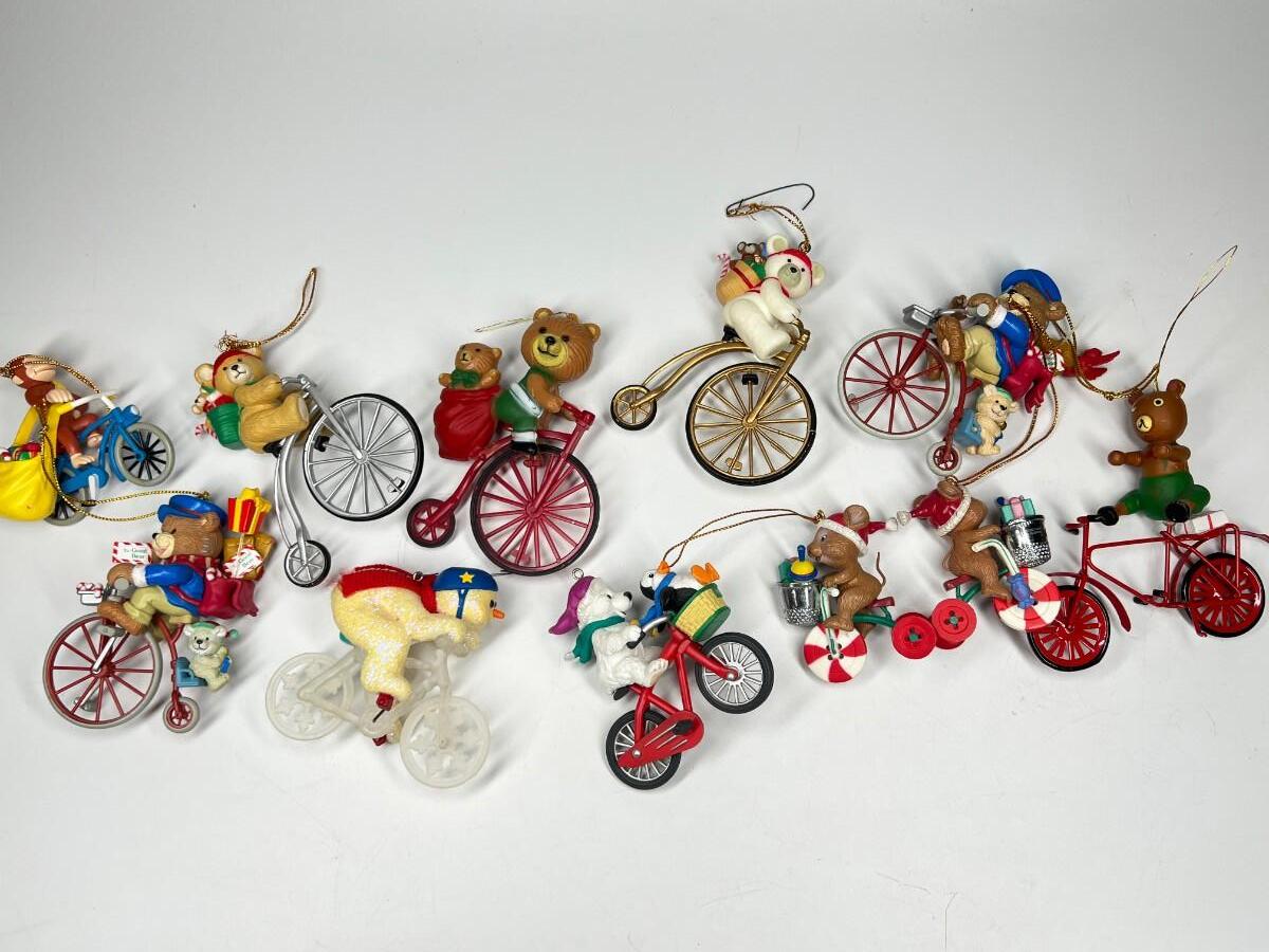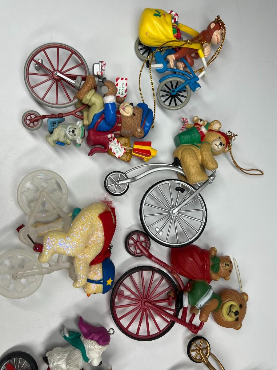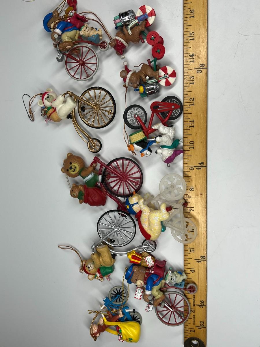 Lot of Christmas Bicycling Bears & Snowman Riding Bikes Holiday Ornaments