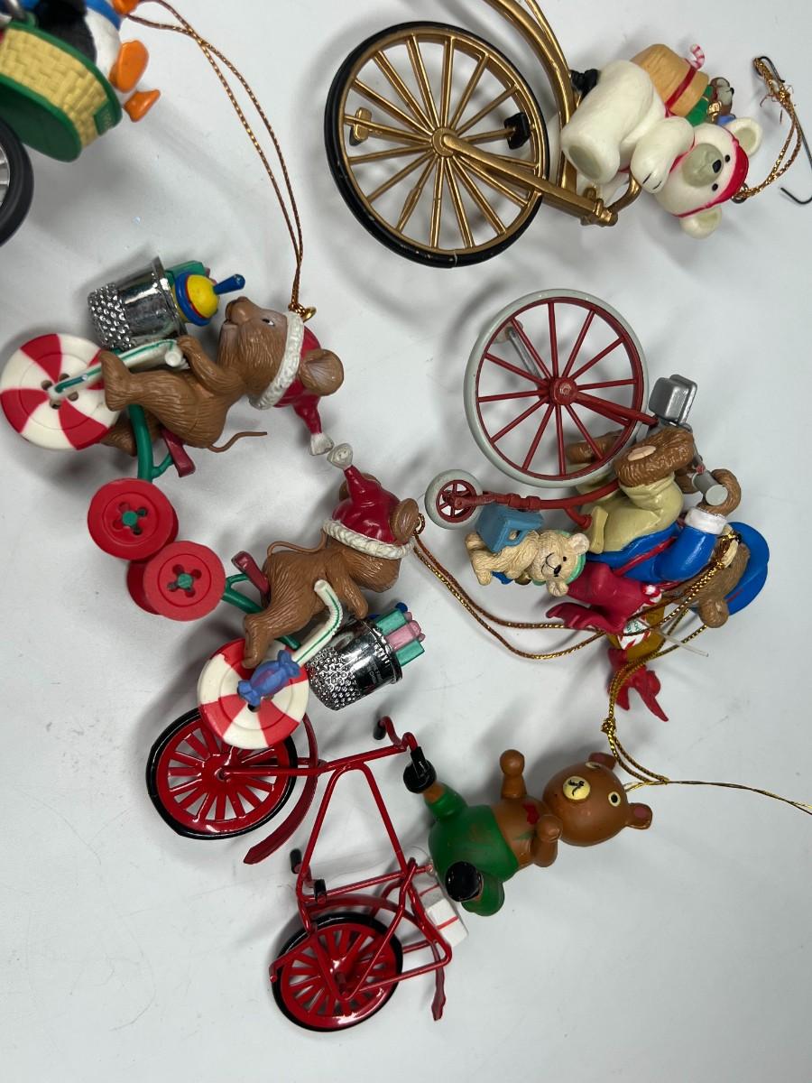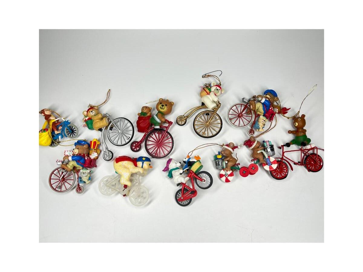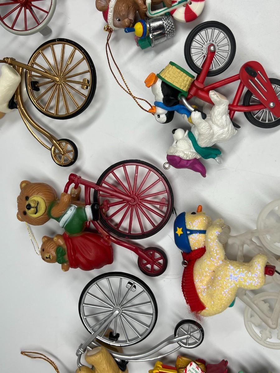 Lot of Christmas Bicycling Bears & Snowman Riding Bikes Holiday Ornaments
