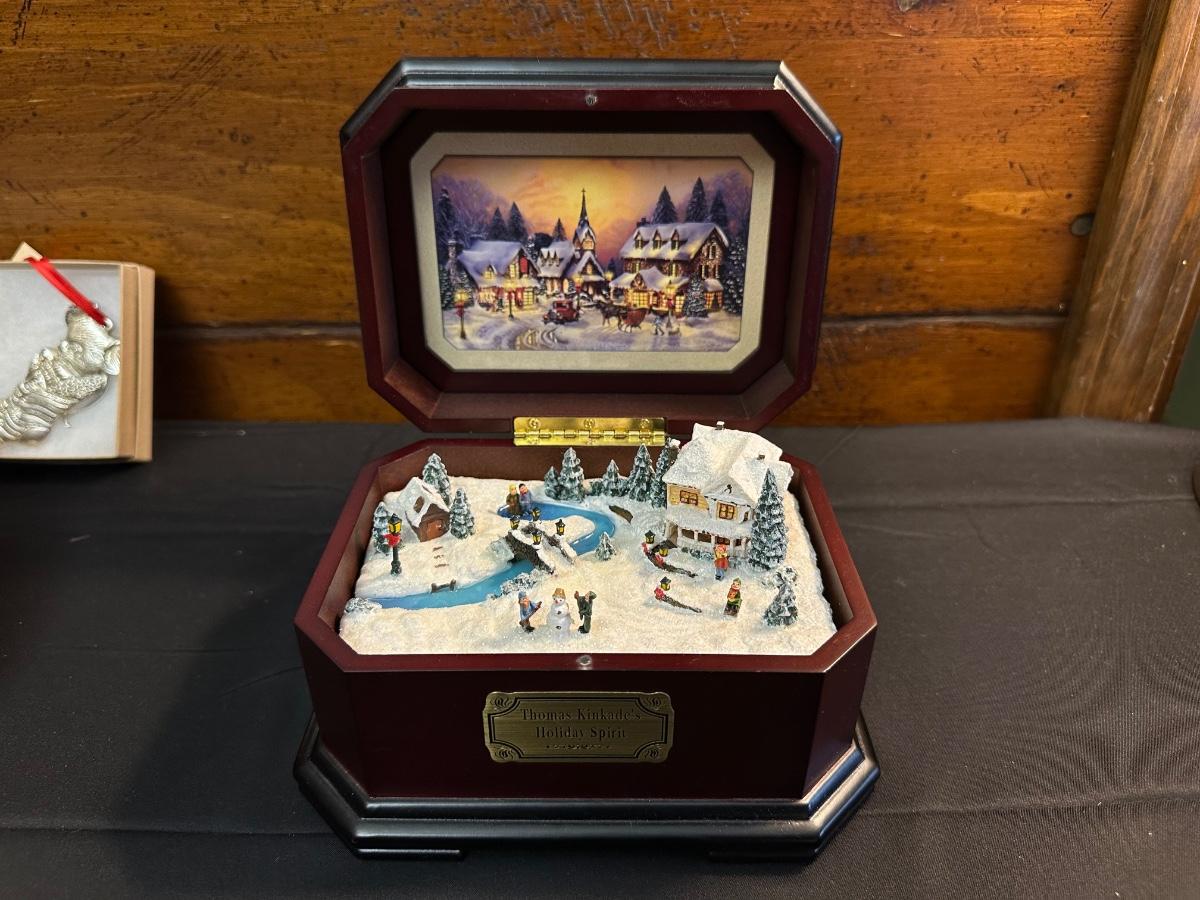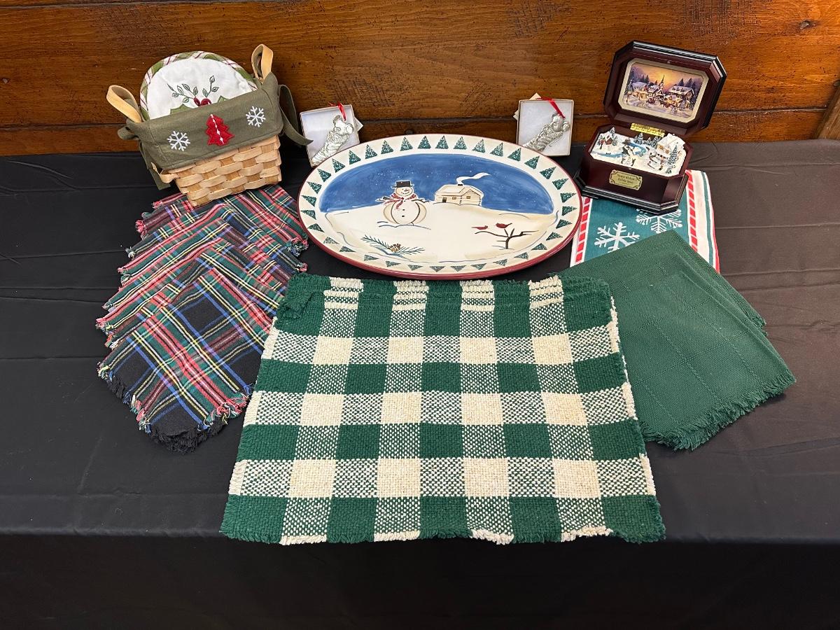 Lot of Christmas Decor including Thomas Kinkade’s Holiday Music Box, Snowman Oval Platter and More!