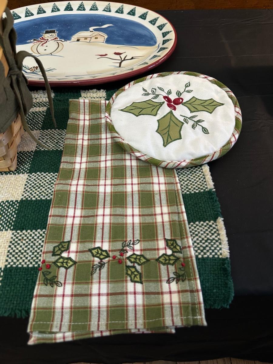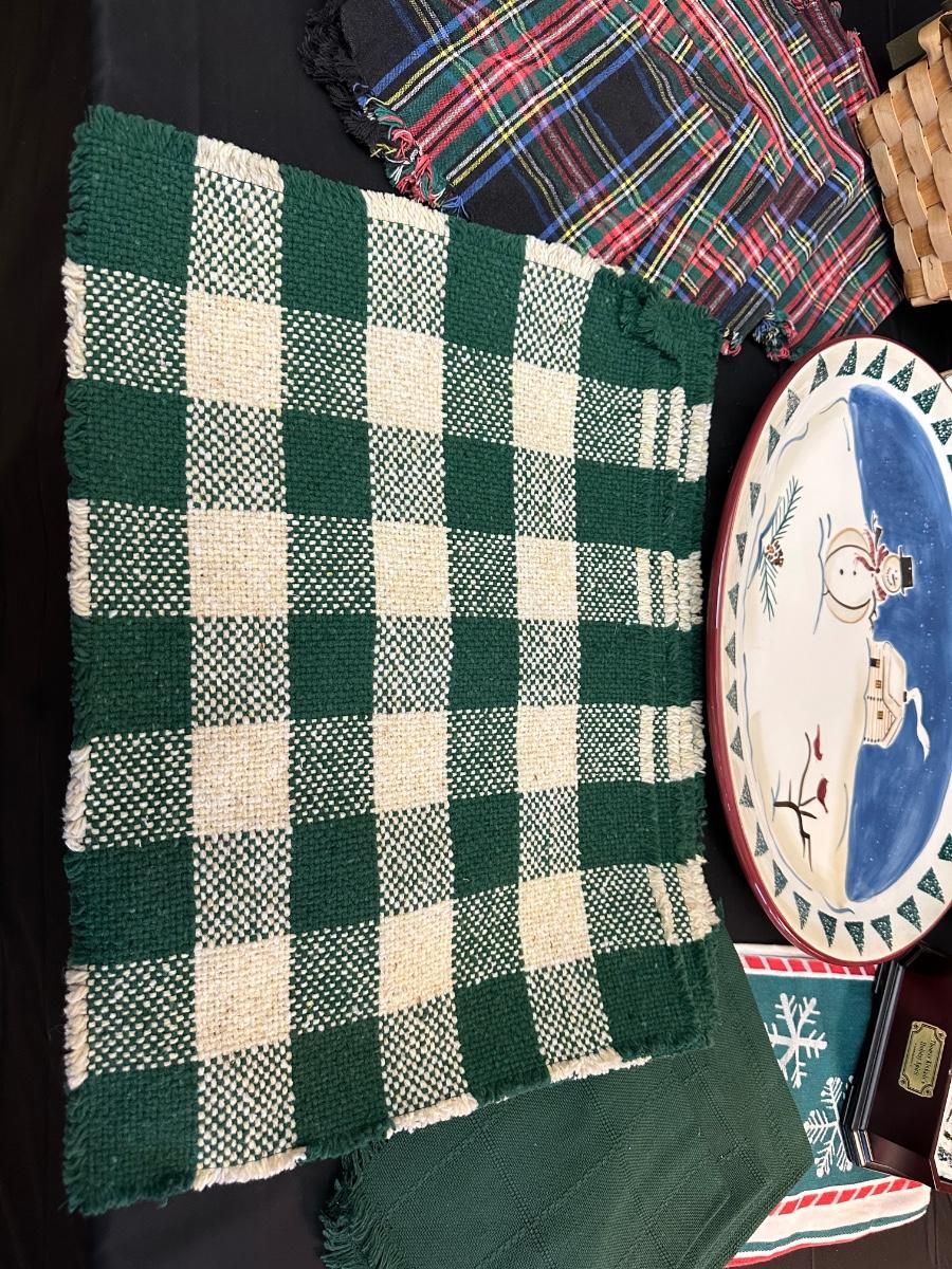 Lot also includes vintage placemats, napkins and two ornaments from Mast General Store.