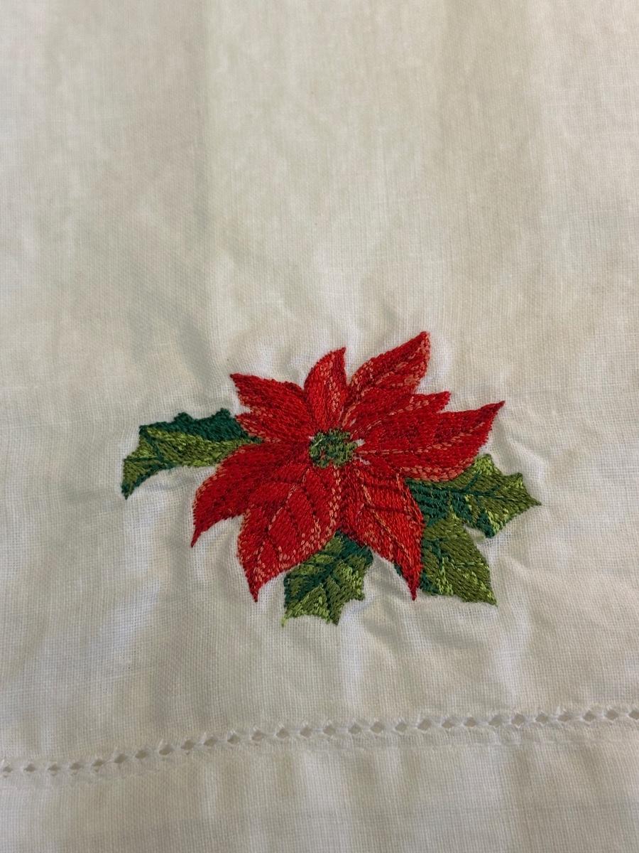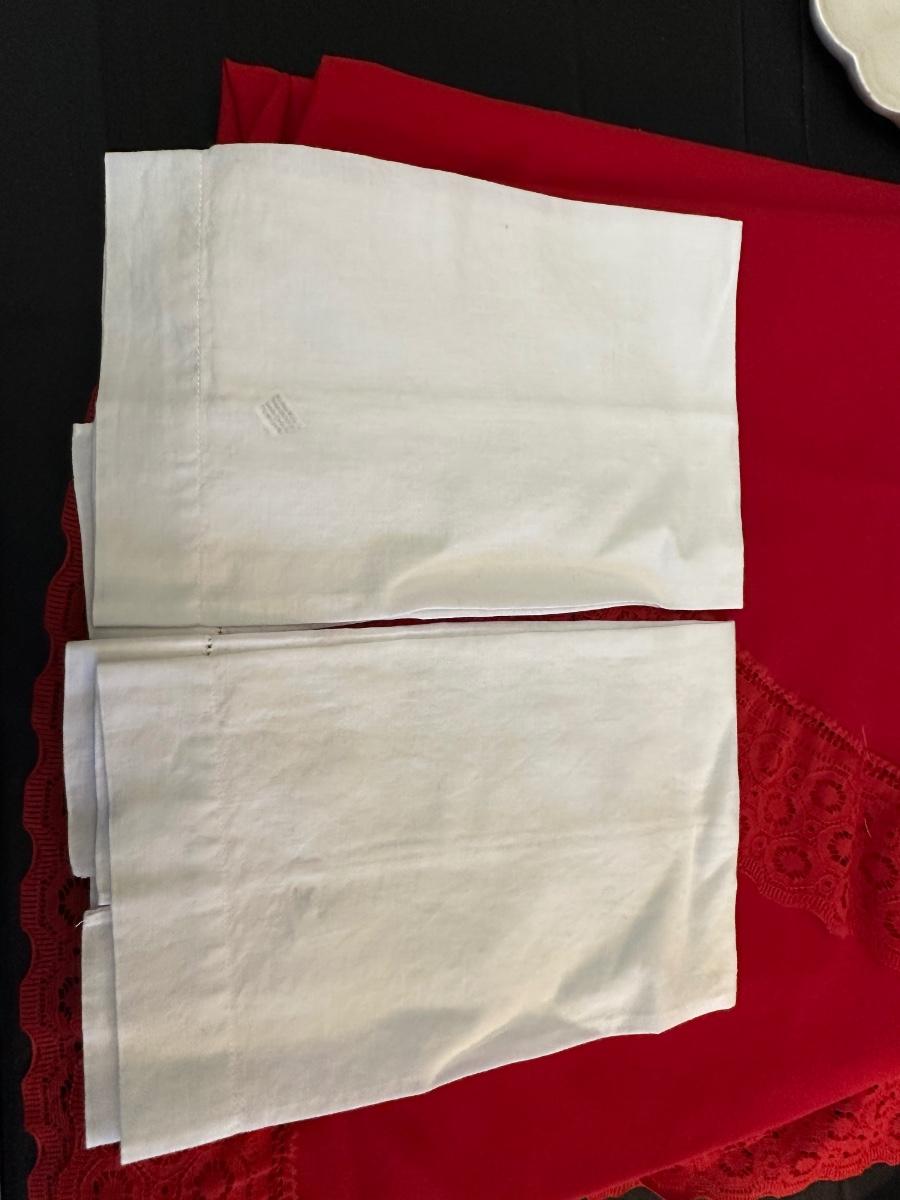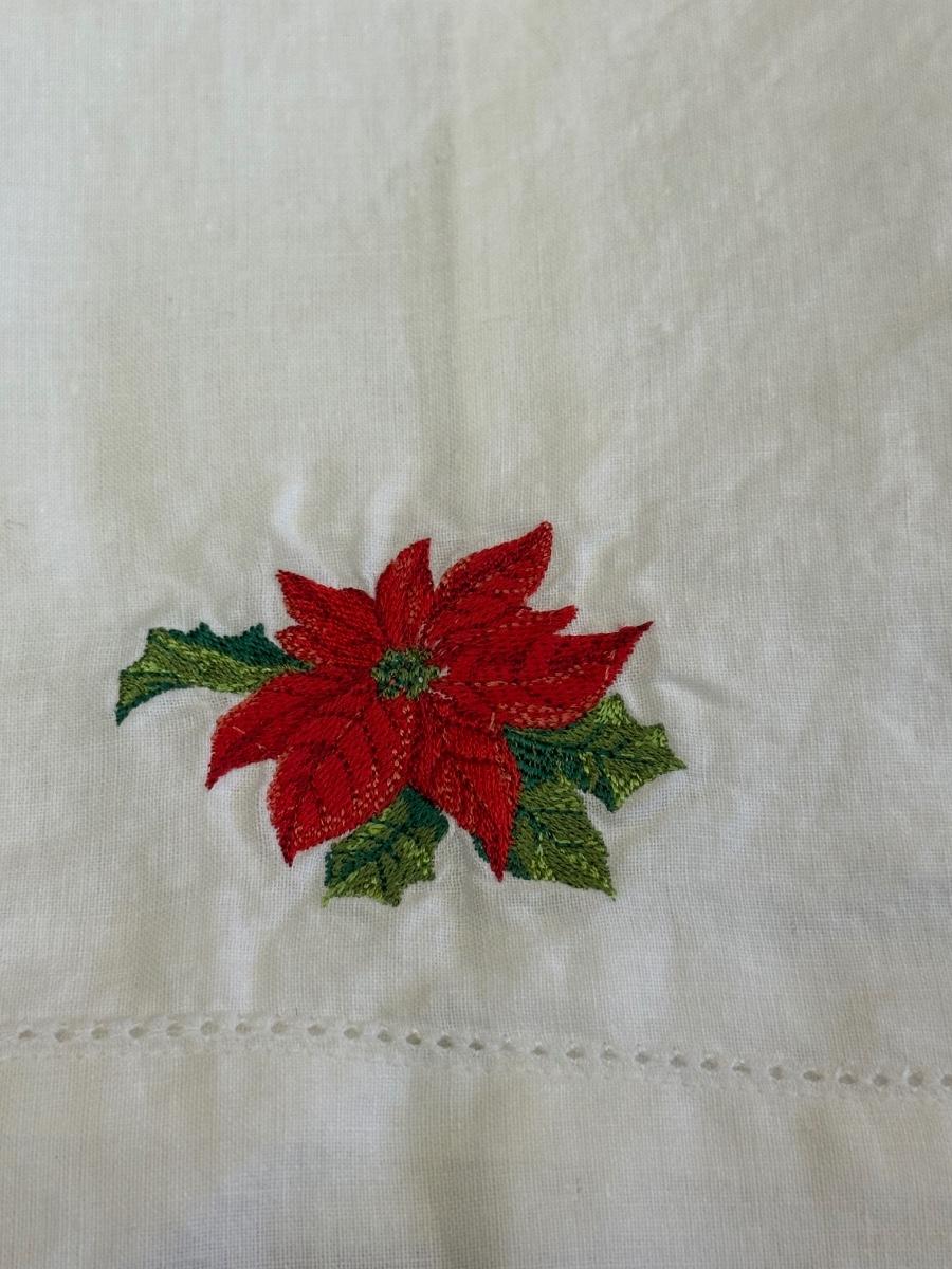 The table cloth does have a few blemishes, but overall a very beautiful table cloth.