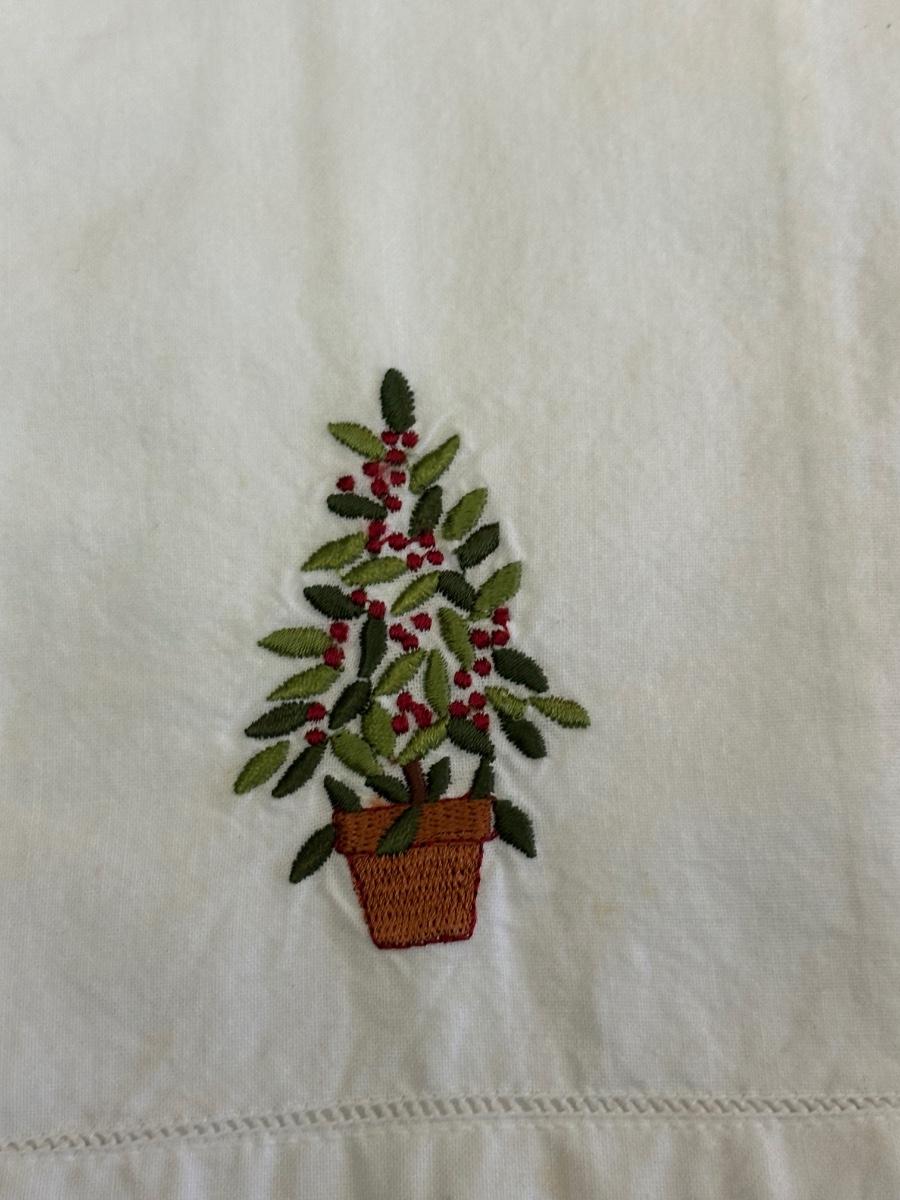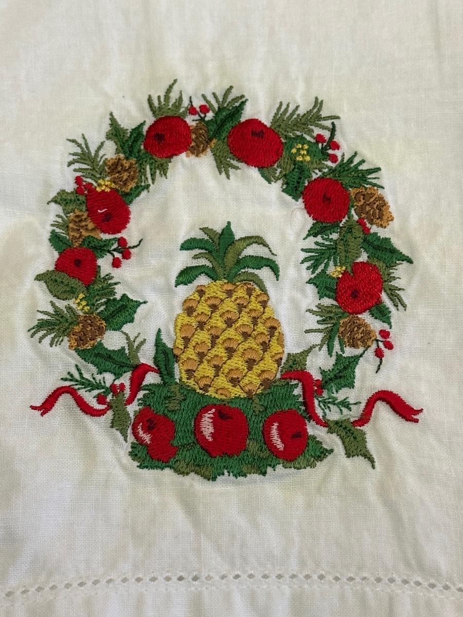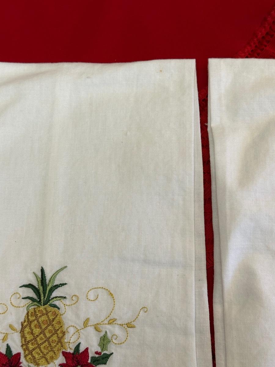 The table cloth does have a few blemishes, but overall a very beautiful table cloth.