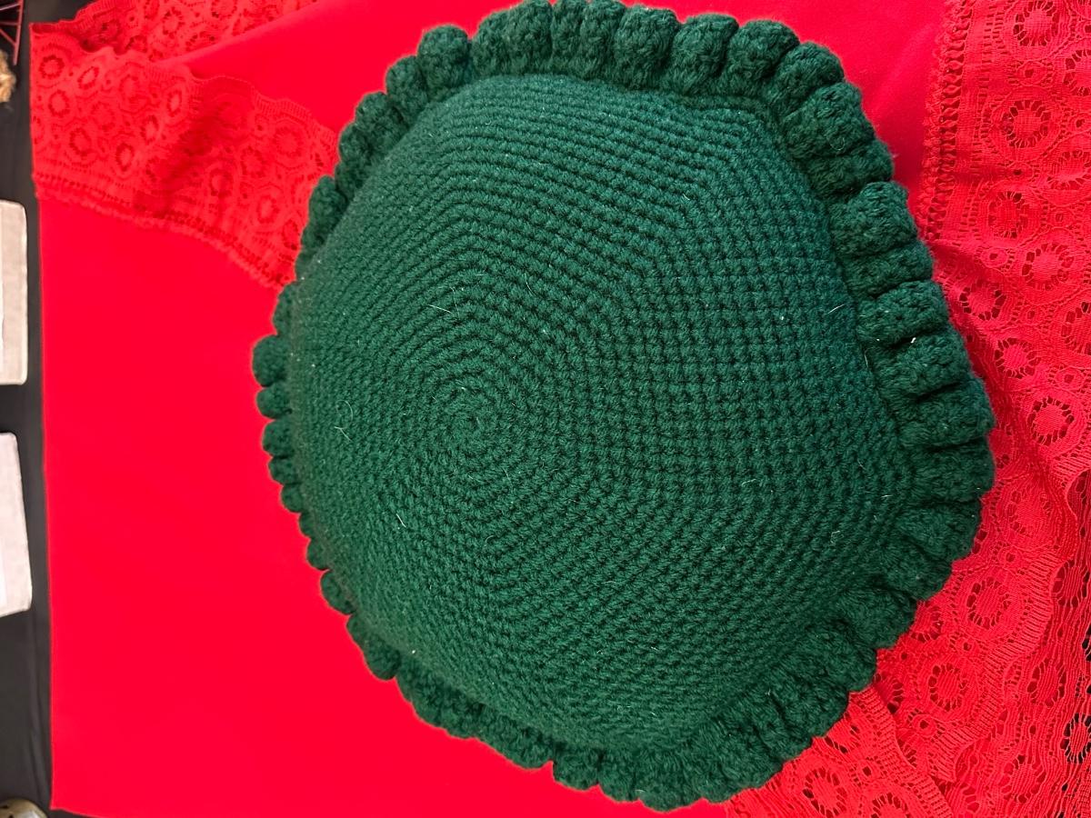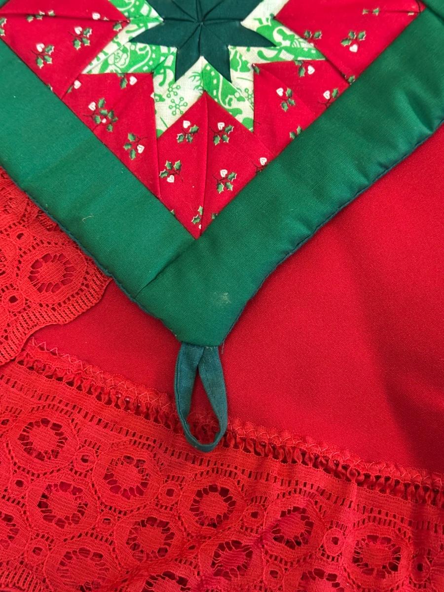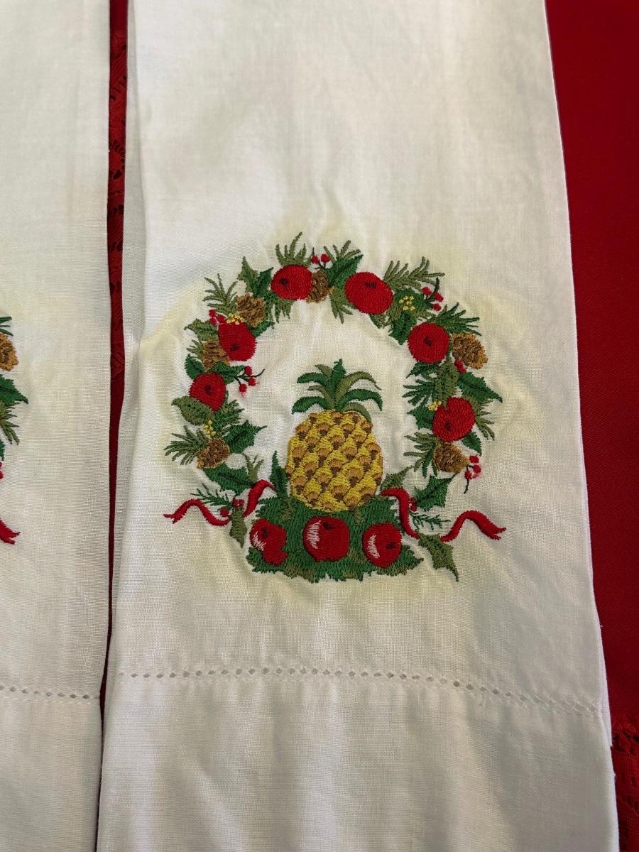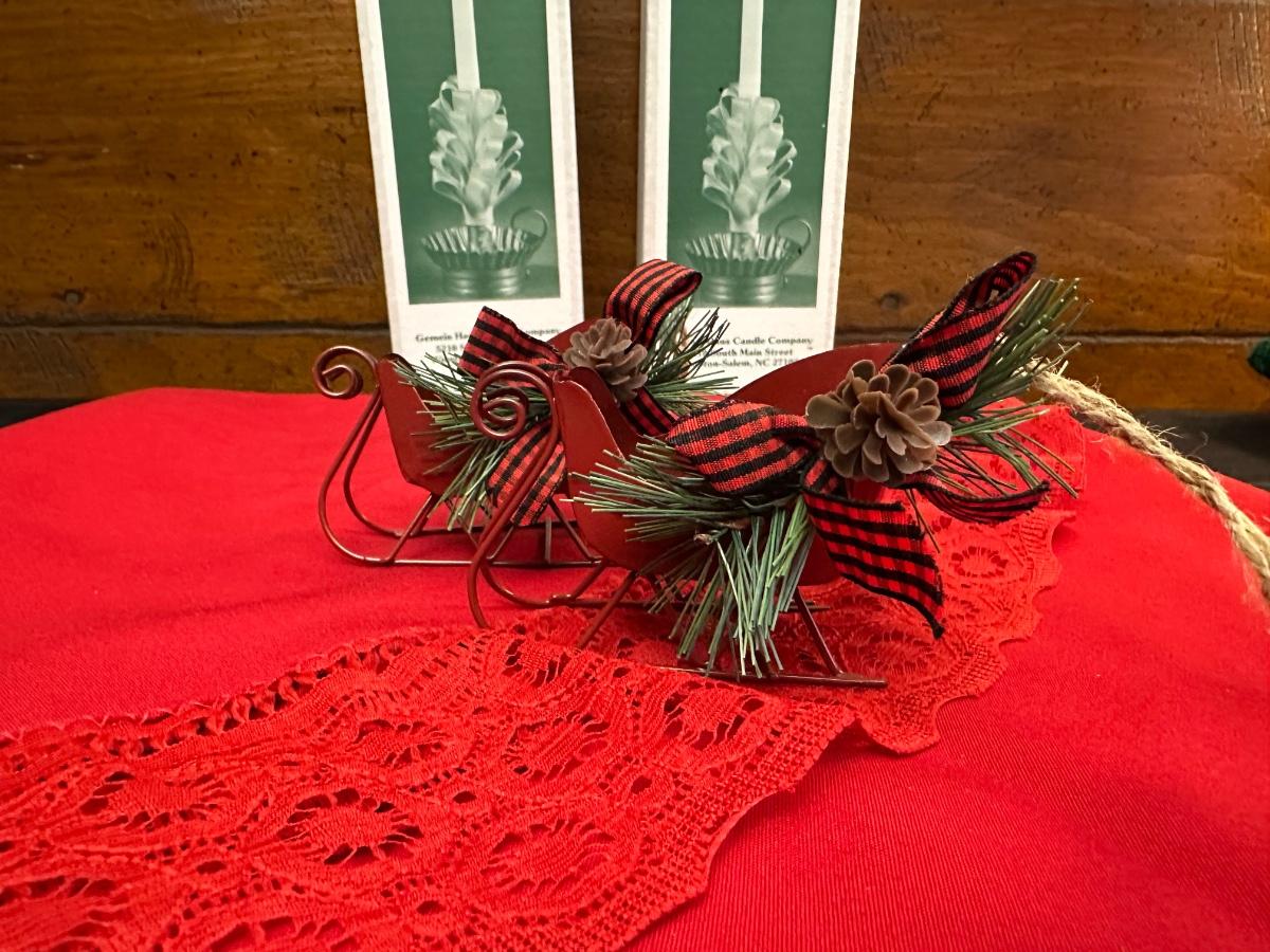Lot of Christmas Decor including Vintage Red Table Cloth, Hand Knitted Pillow and More!