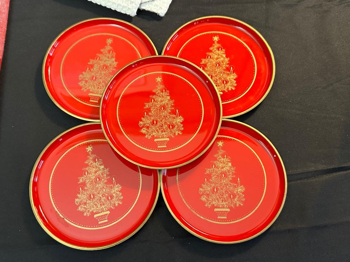 The Christmas Tree Coasters are plastic