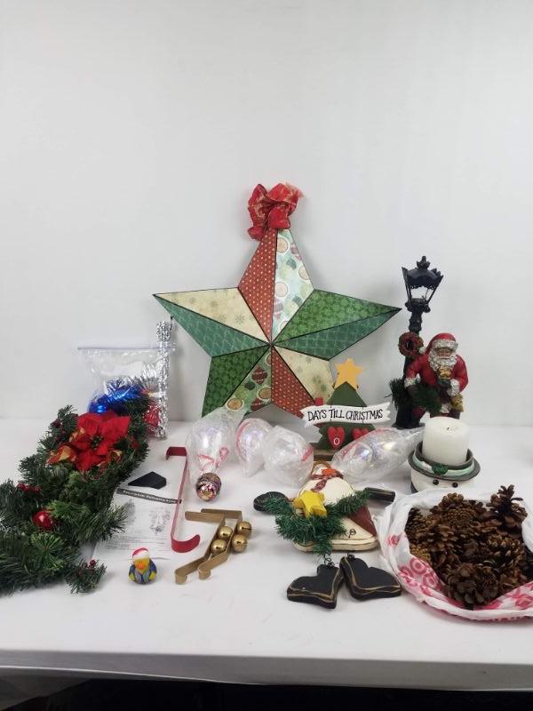 Lot of Christmas Decor. Larger Ornaments, Metal Star, etc