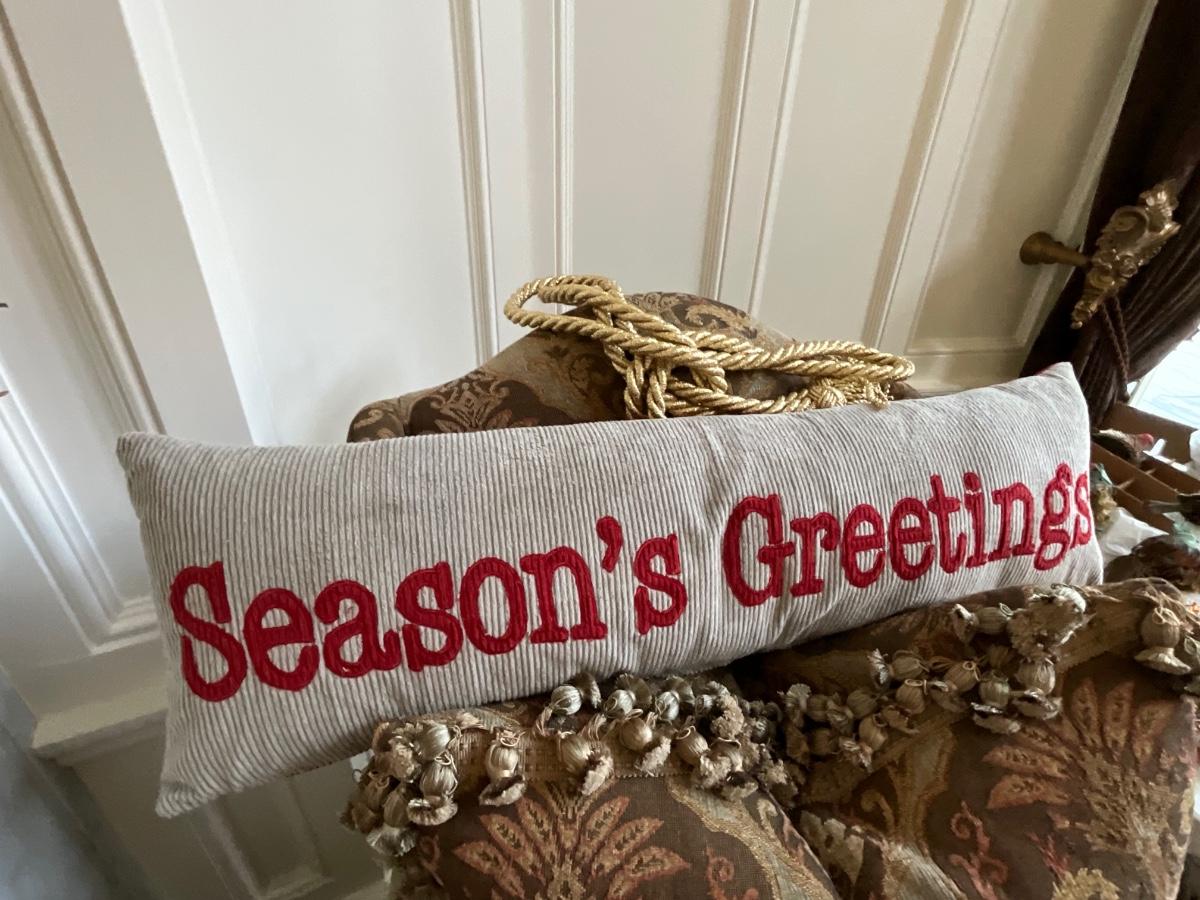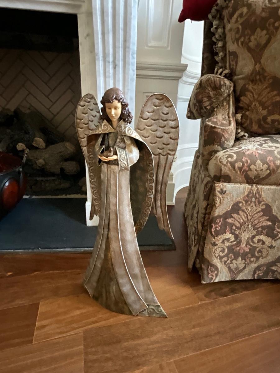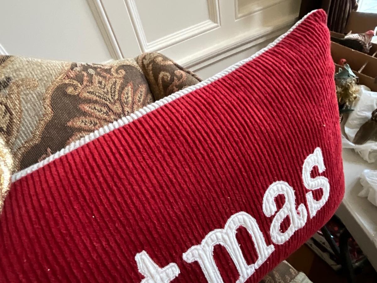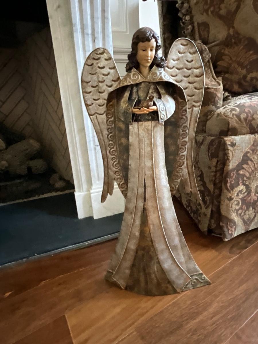 Lot of Christmas Designer Christmas Stockings, Pillow, Metal Angel, and Blue Sky Collection Porcelain Church
