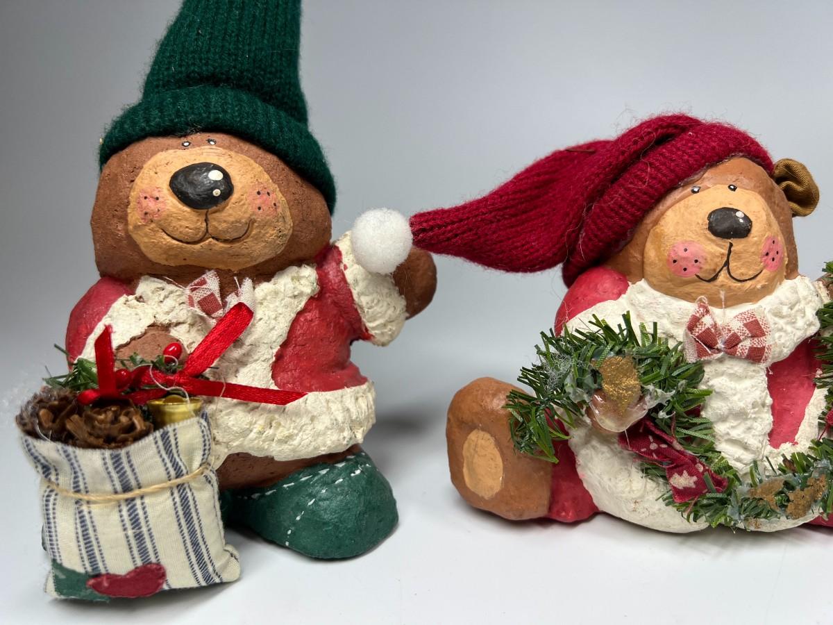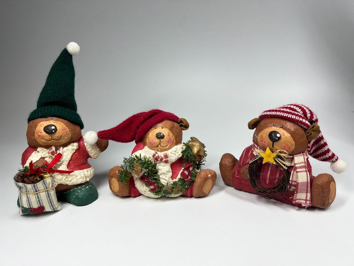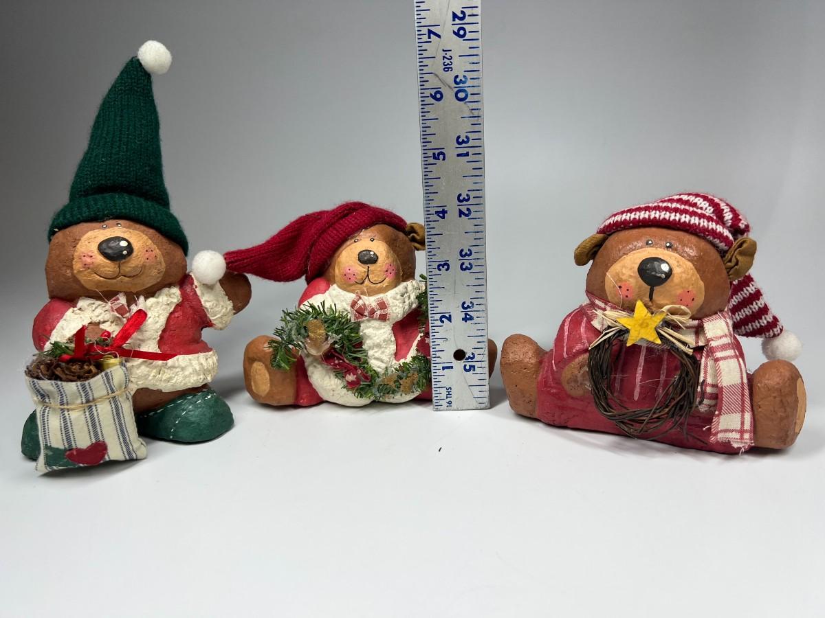Lot of Christmas Holiday Bear Light Plaster Figurines