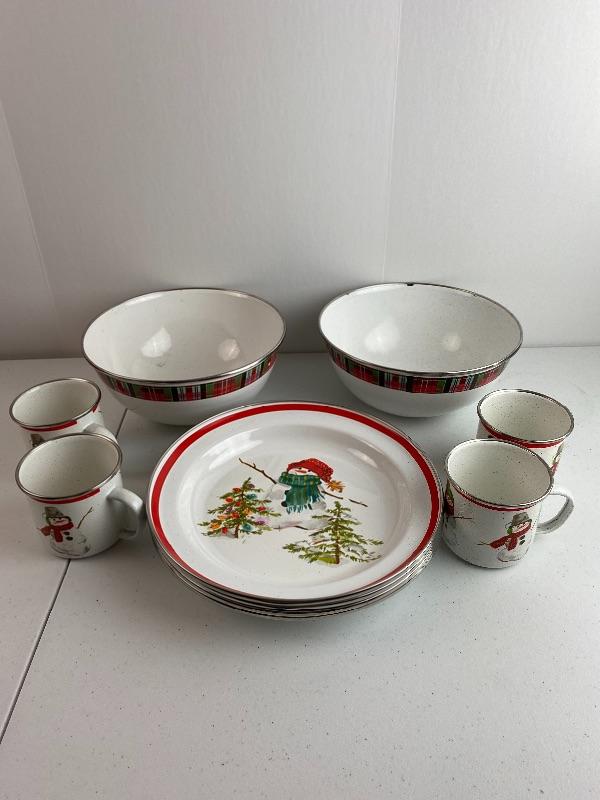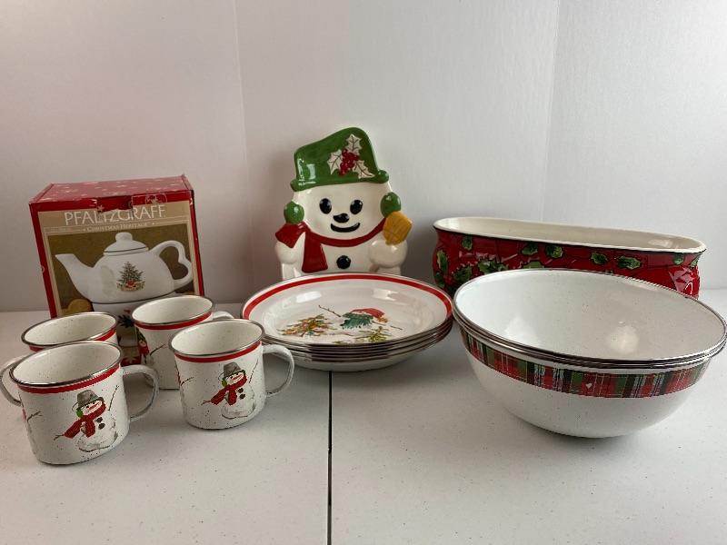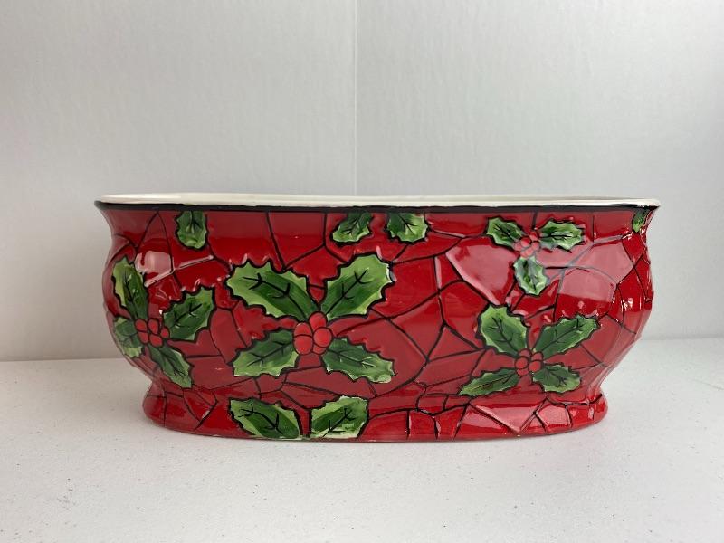 Lot # 121 -Lot of Christmas Miscellaneous Dishes Platter Planter Teapot