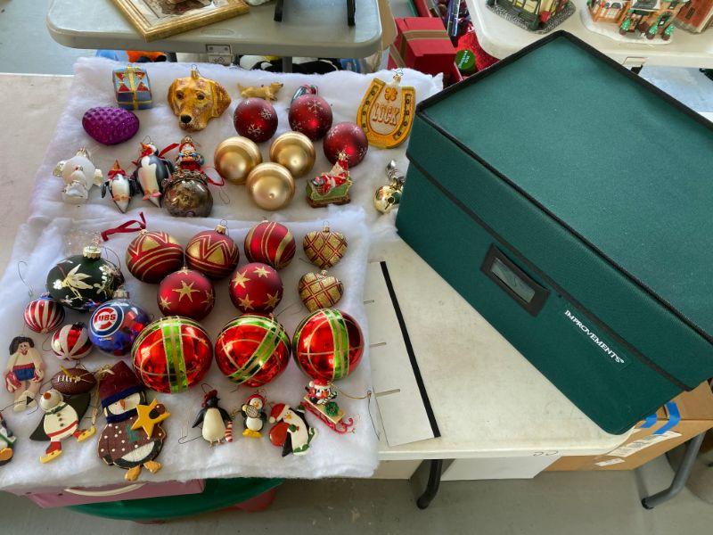 Lot # 602 Lot of Christmas Ornaments with storage container
