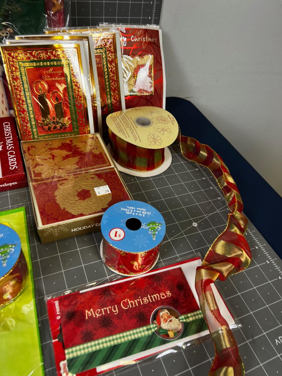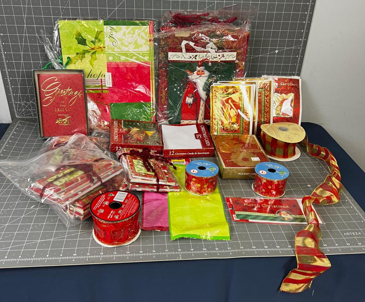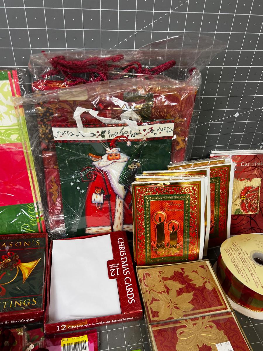 Lot of Christmas Paper: Cards, Bags for Gifts Ribbon Etc.
