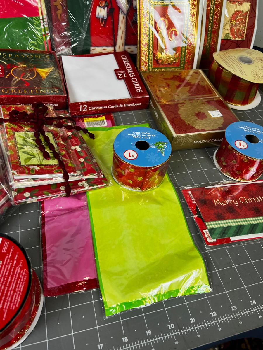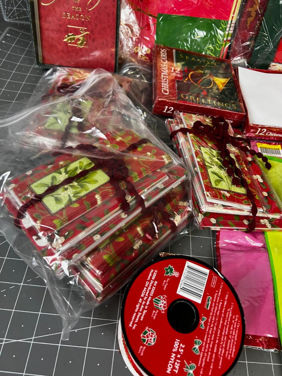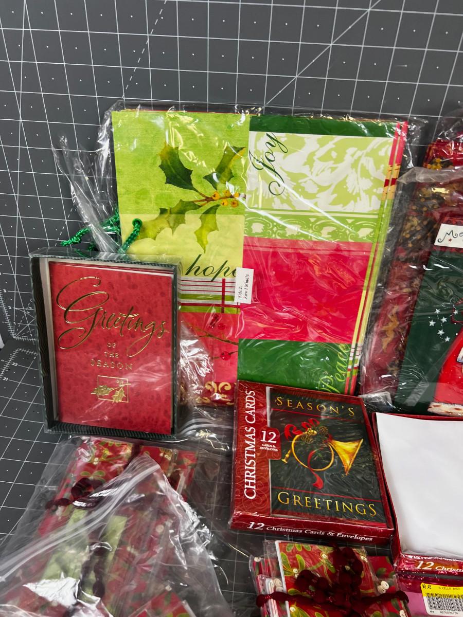 Lot of Christmas Paper: Cards, Bags for Gifts Ribbon Etc.