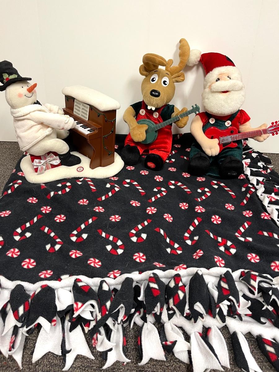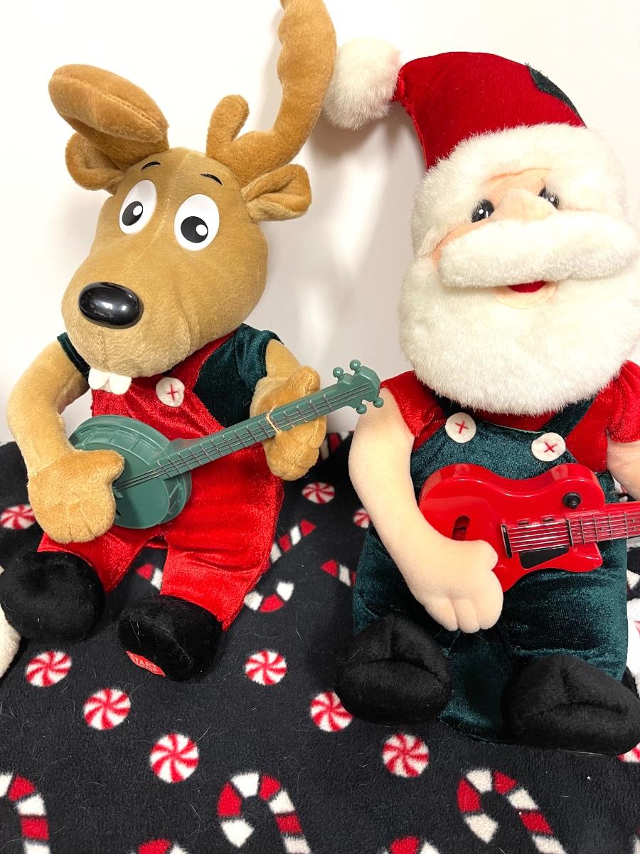 Lot of Christmas Singing Music Box Plush Stuffed Animals Santa Claus, Reindeer, & Snowman