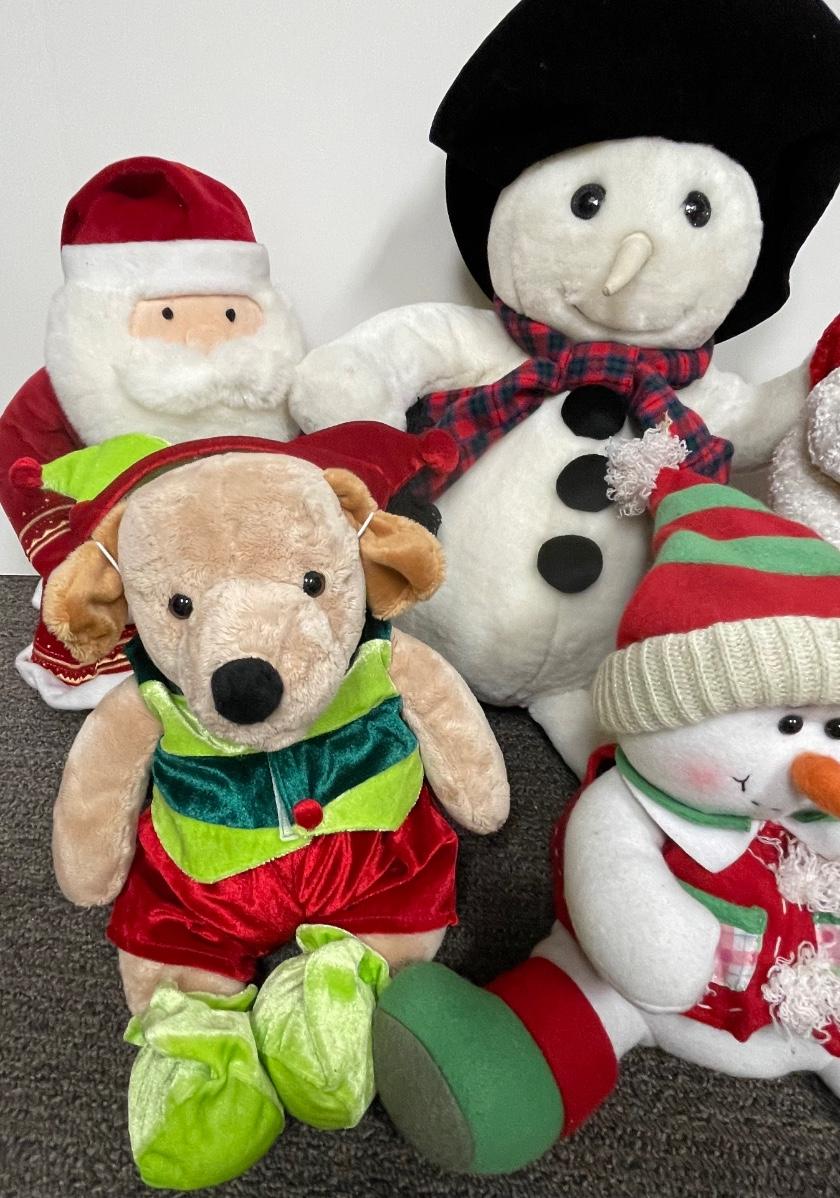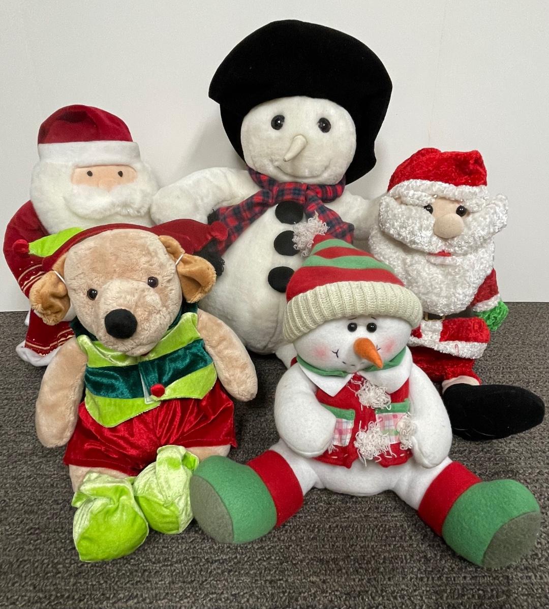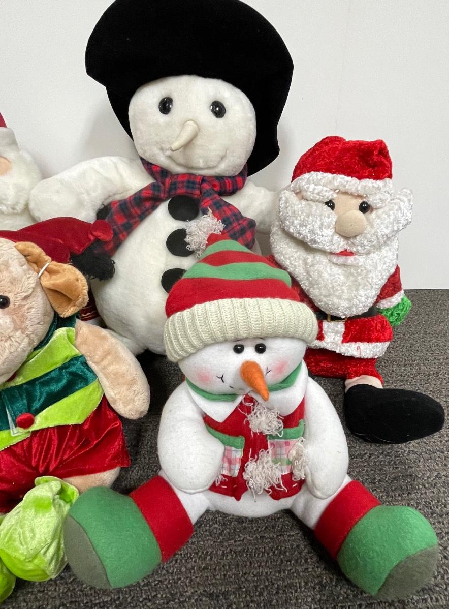 Lot of Christmas Stuffed Animal Plushes Santa Claus, Snowmen, and Reindeer