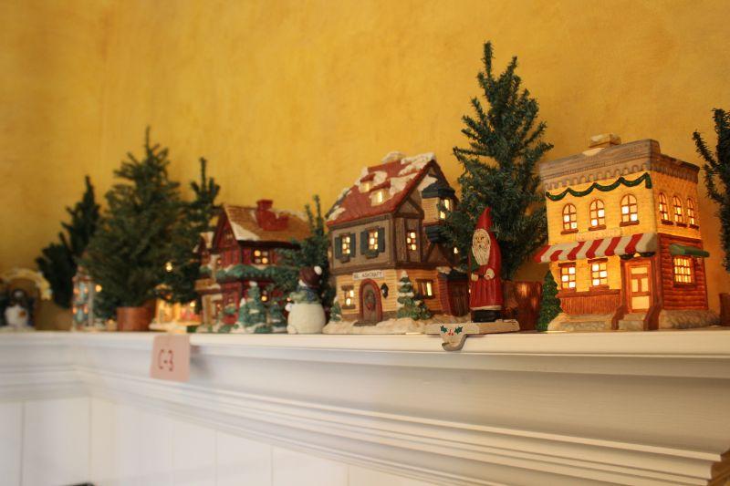 C-3 Lot of Christmas-6 Building Houses  -Trees-Coffee Shop-Doctor's Office-General Store-Gift Shop-Christmas House-Silo