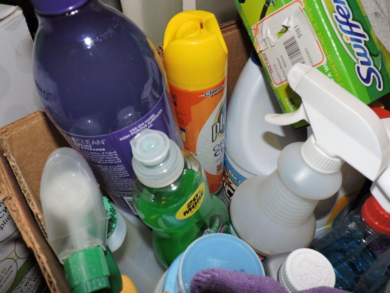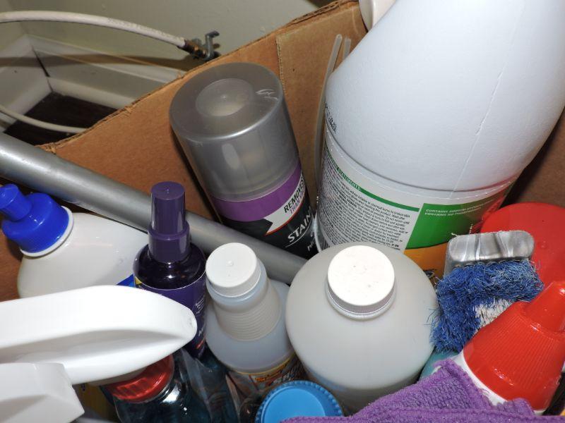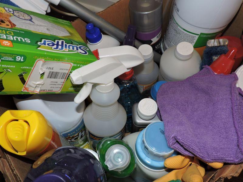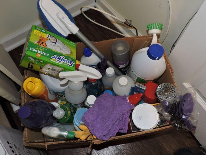 Half-full to full bottles of cleaning supplies and tools. **Please read Terms and Conditions before placing a bid. Pick up is Thursday, August 15, 2019 from 4pm to 7pm or Sunday, August 18 from 11am-2pm in Mullica Hill. All sales are final. All sales are as is, where is. Please review all photos. Any props included in photos are not included in listing. All measurements are approximate.