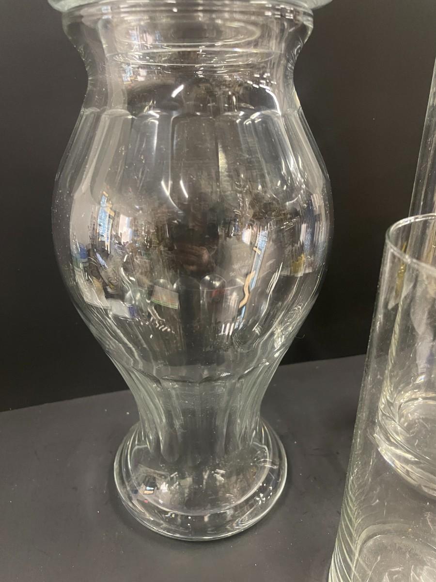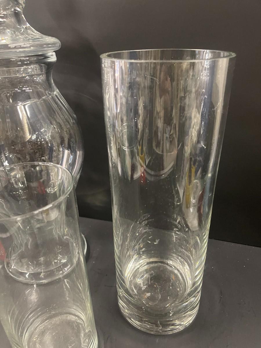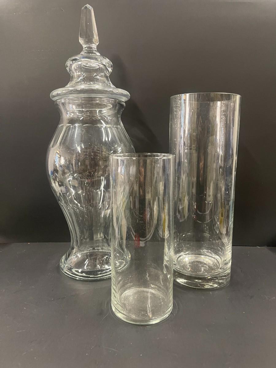 Lot of Clear Glass: Apothecary Jar & 2 Cylindrical Vases