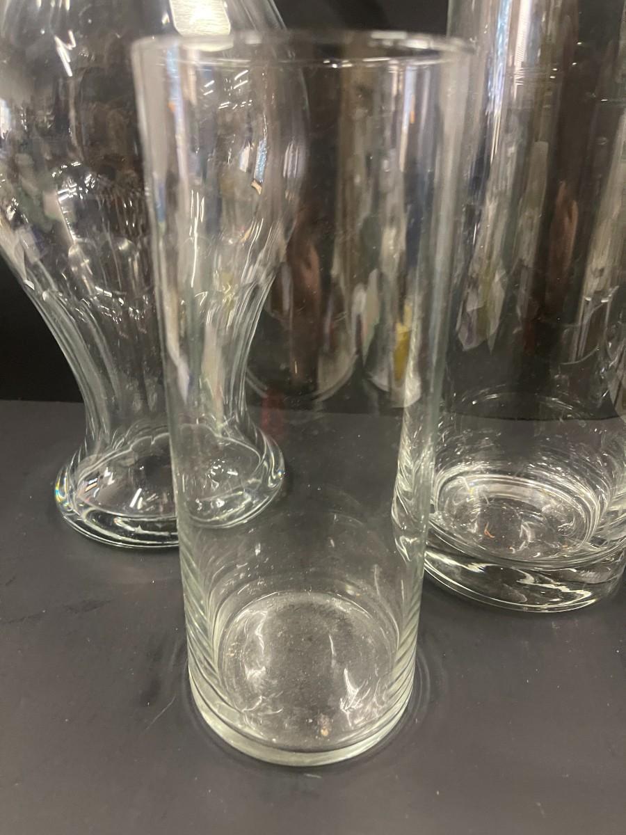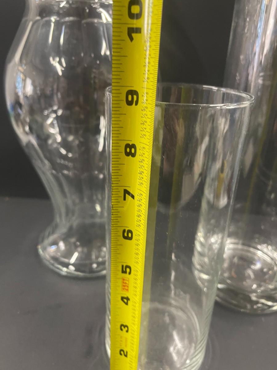 Apothecary jar is nice and heavy, much more substantial than it looks in the photos. The larger of the 2 cylindrical vases is also nice and thick glass. The other is fairly thin.