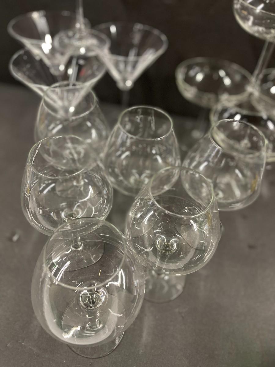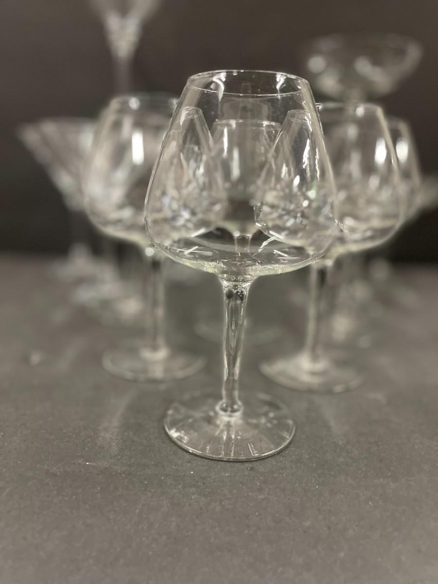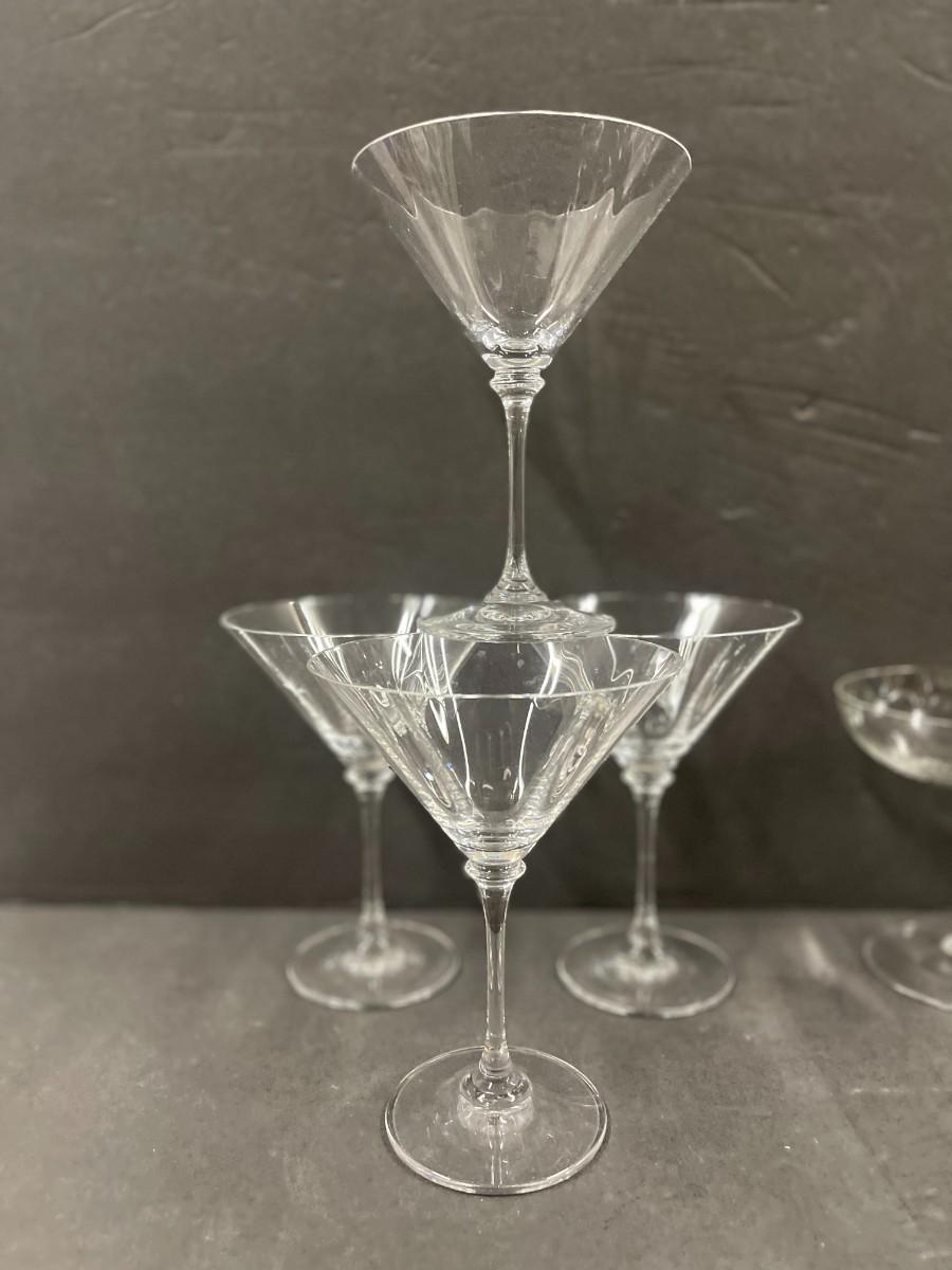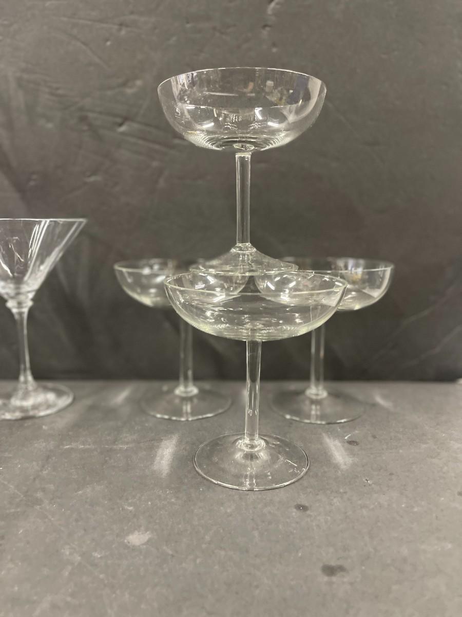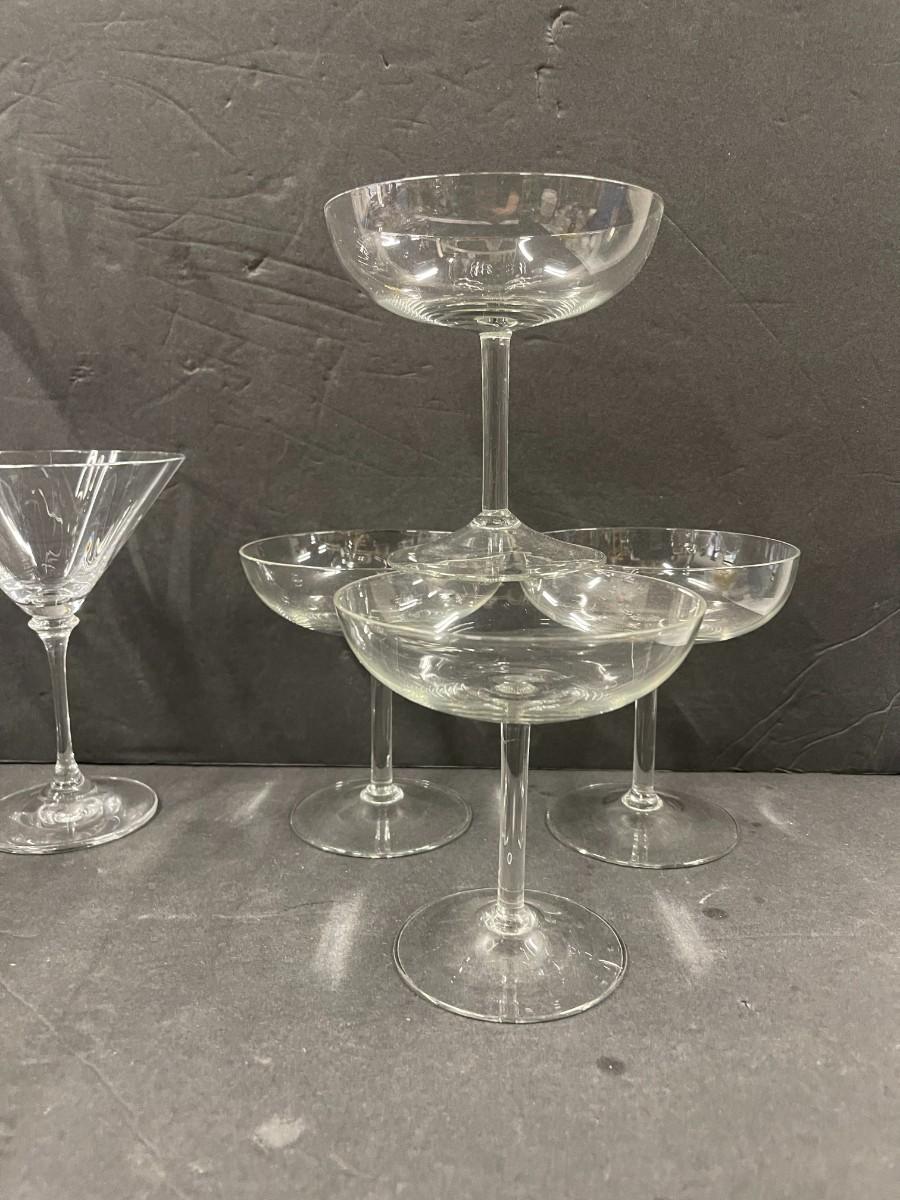 Includes: 4 coupes, 4 martini glasses and 6 wine glasses. All excellent condition.