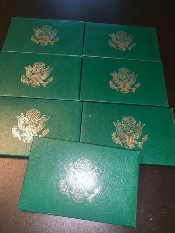 You are bidding on the seven proof sets pictured. Shipping is available Priority mail for a flat fee of $8.99 priority mail.