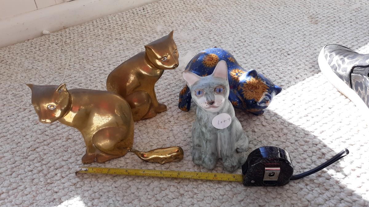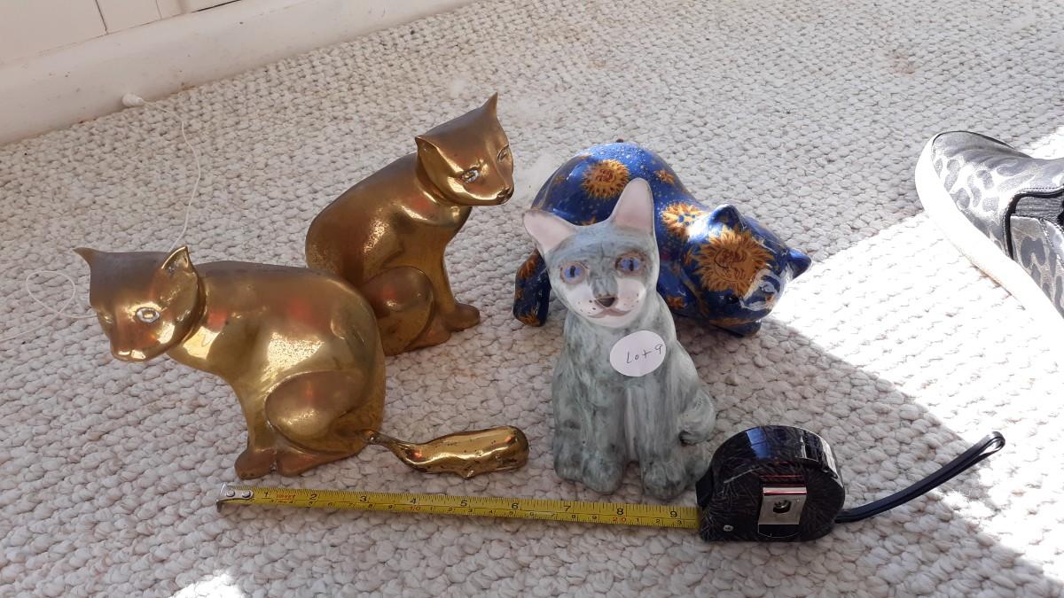 Two vintage brass cats, and Other Cats