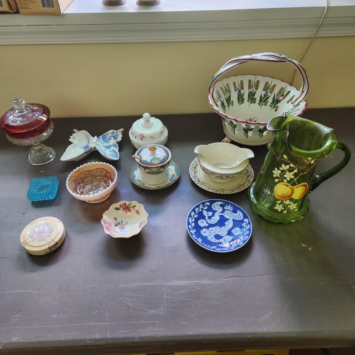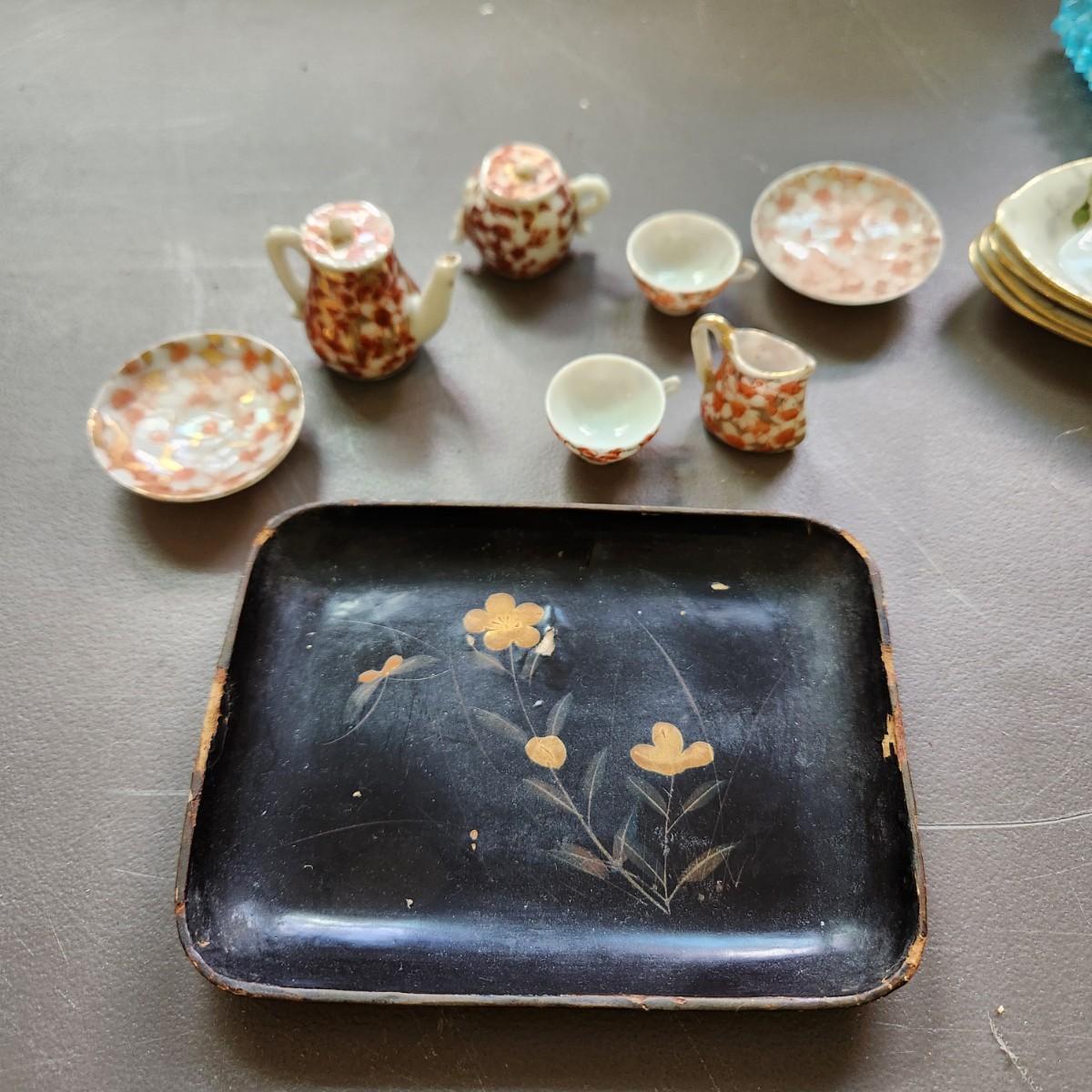 Lot of Collectables Glass China Mini Tea Set w Note of Ownership