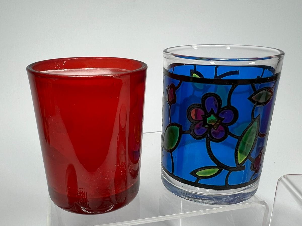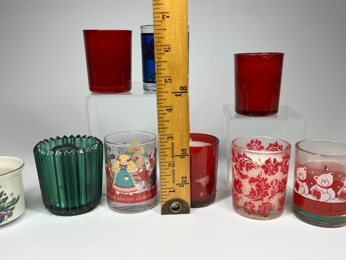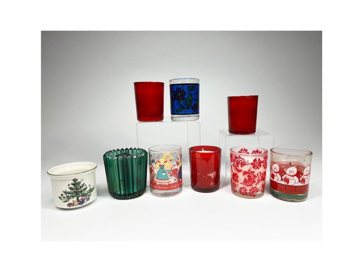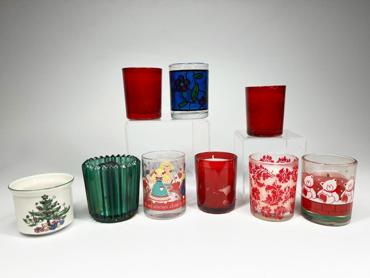 Lot of Colorful Holiday Glass Tealight Candle Holders