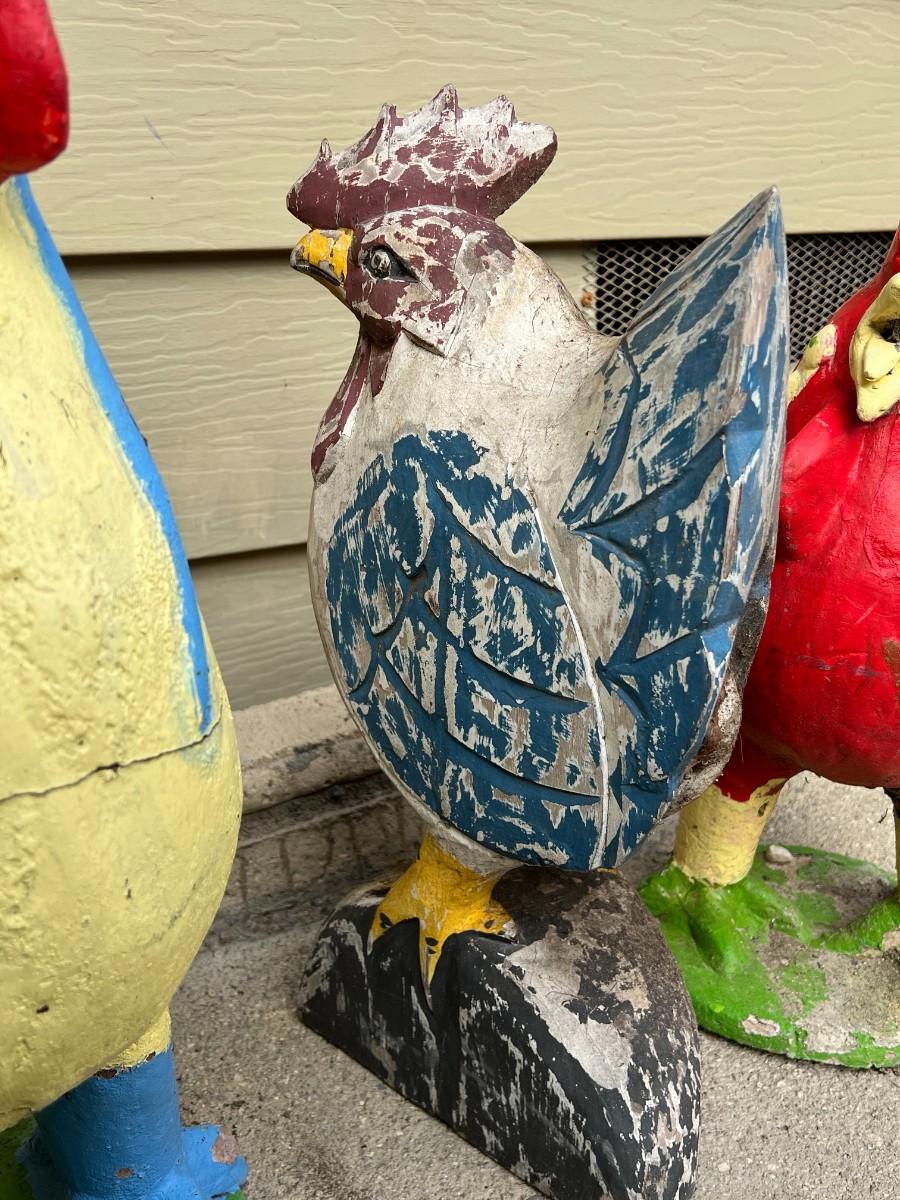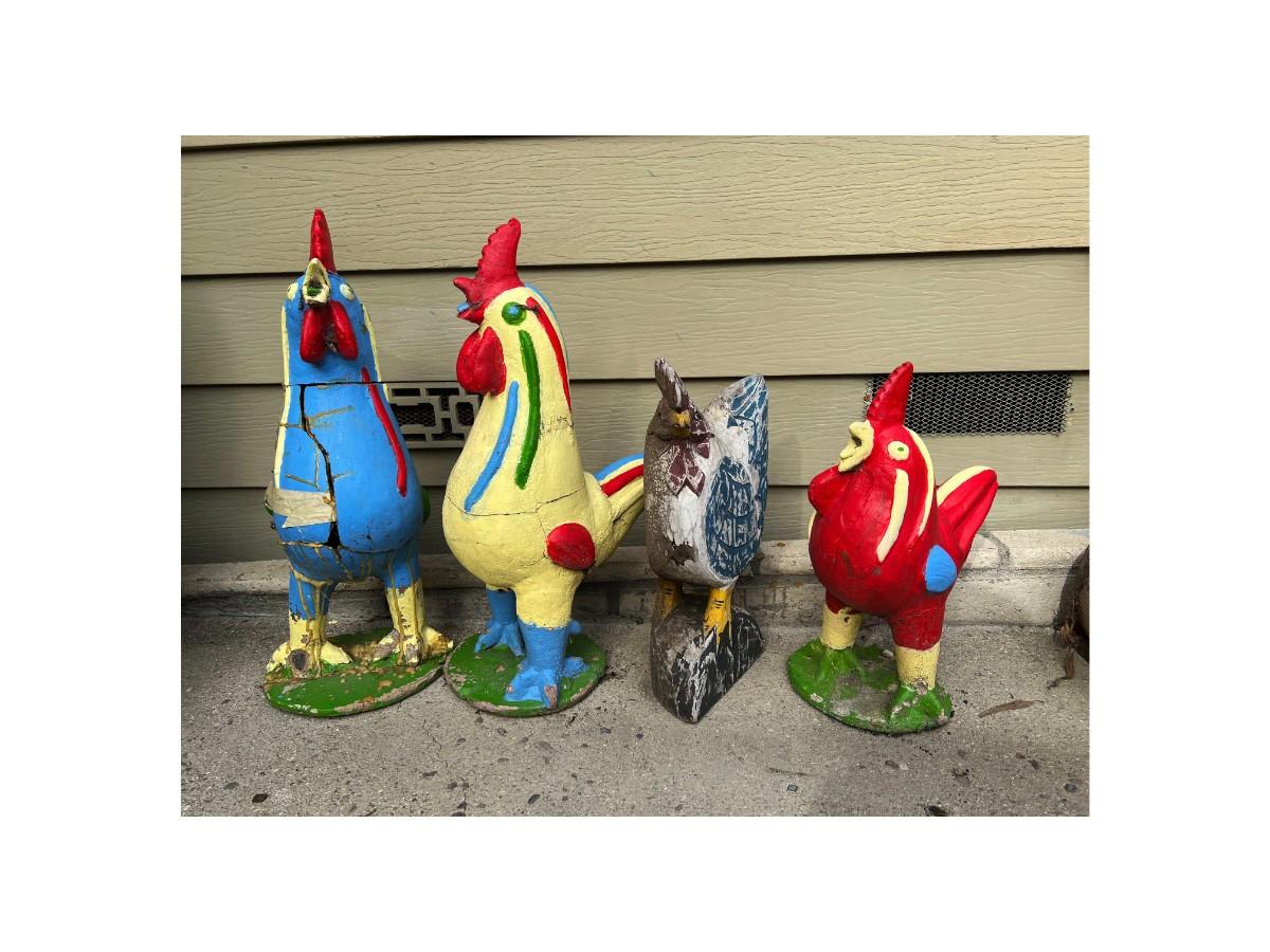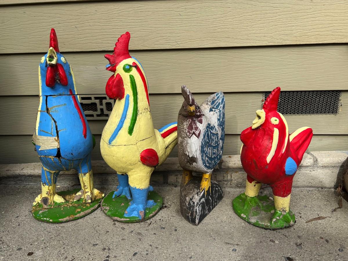 Lot of Colorful Plaster Rooster Garden Yard Art Decorations