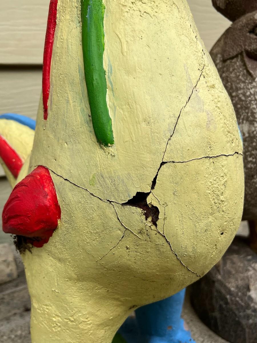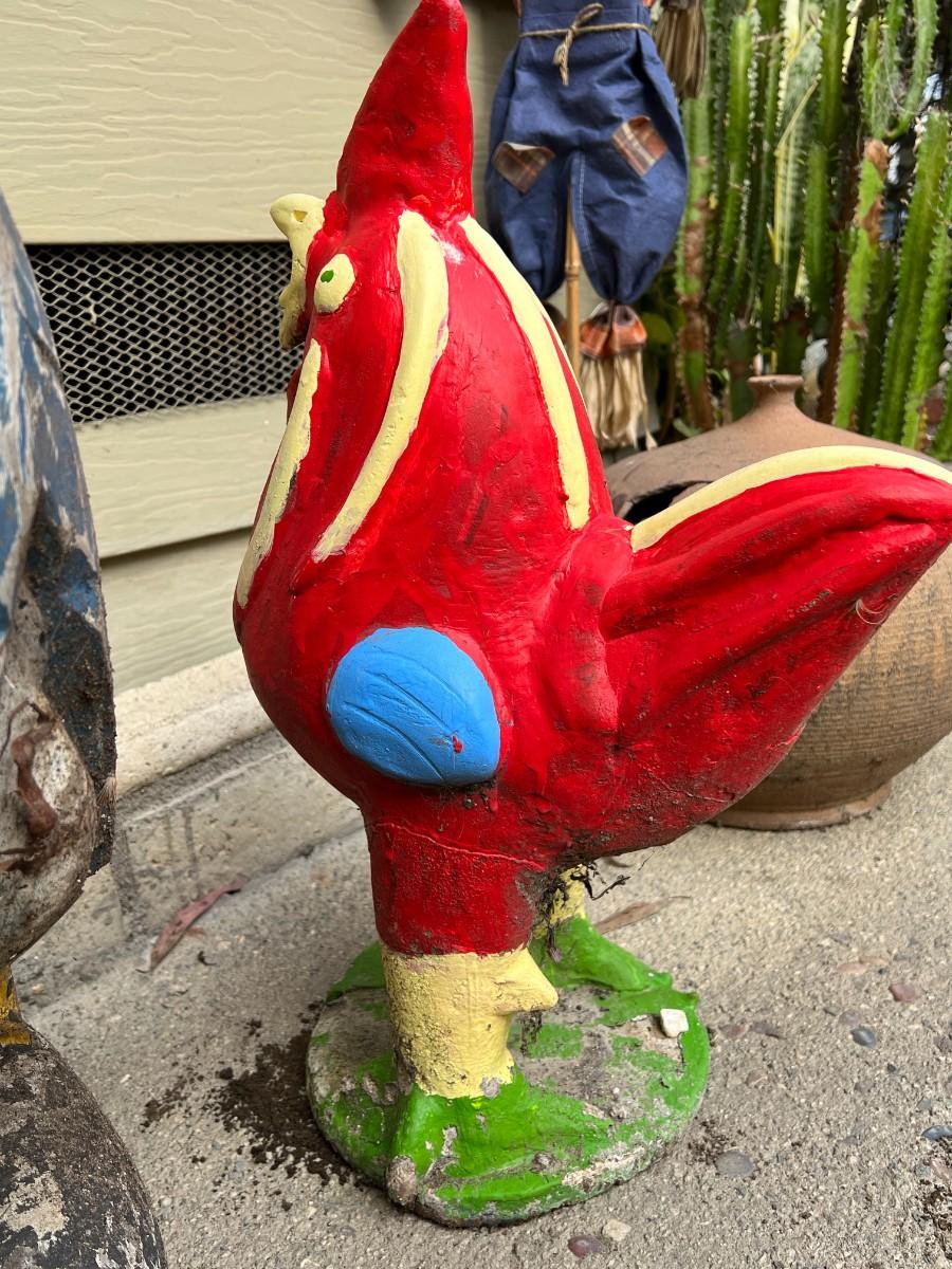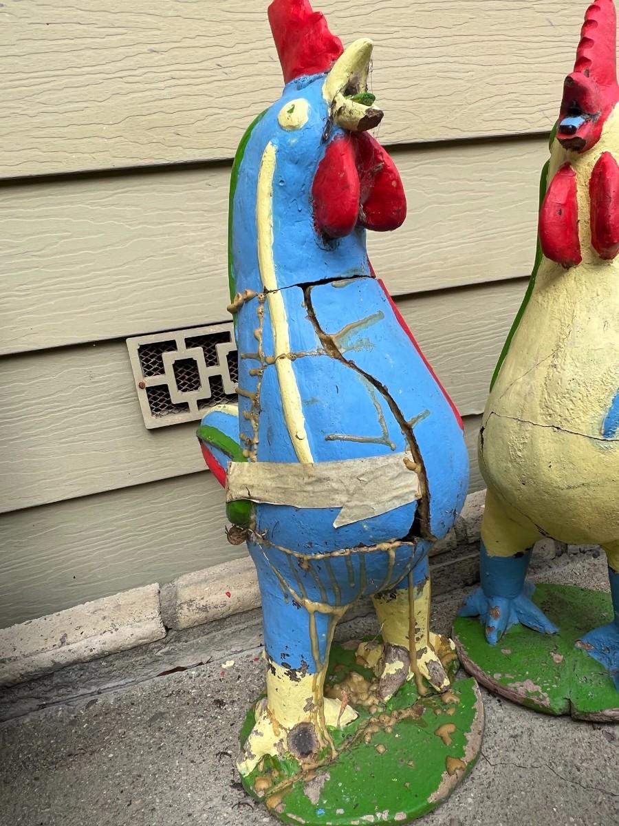 Lot of Colorful Plaster Rooster Garden Yard Art Decorations, there is some damage to some of the roosters, but is still in good useable condition. Check pictures for more details and for sizing.