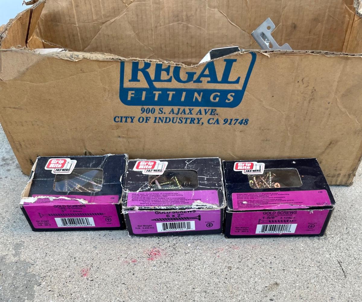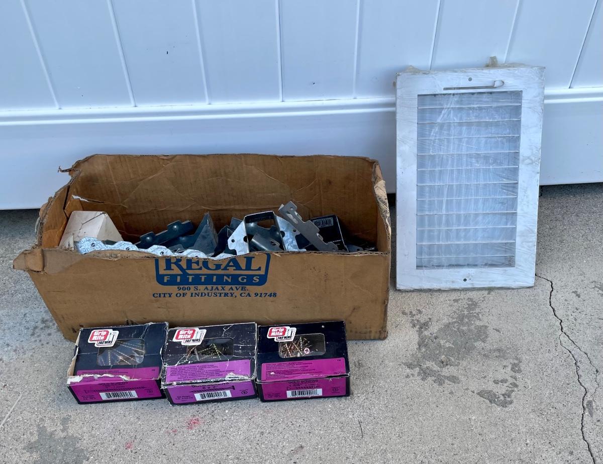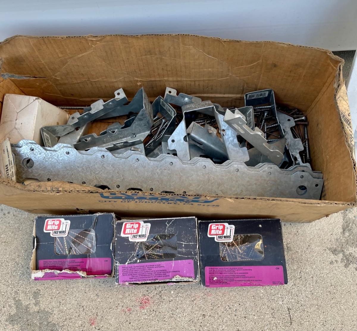 3 boxes of fasteners and a lot of miscellaneous lumber joist straps