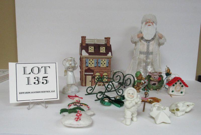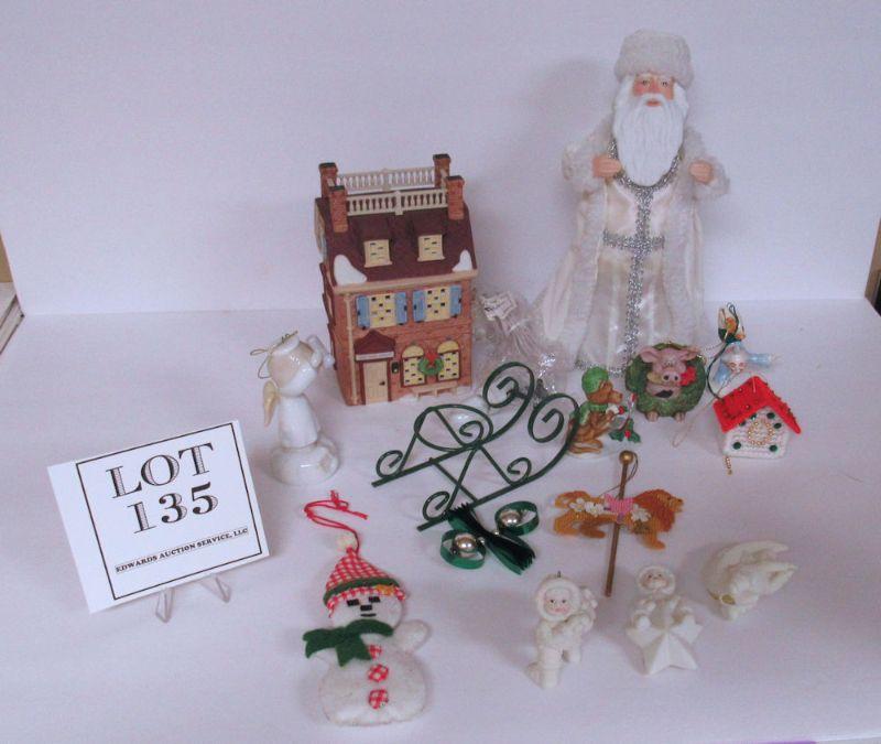 Lot of Contemporary Christmas Stuff, Santa Tree Topper, Dept 56 House, Misc Ornaments, More