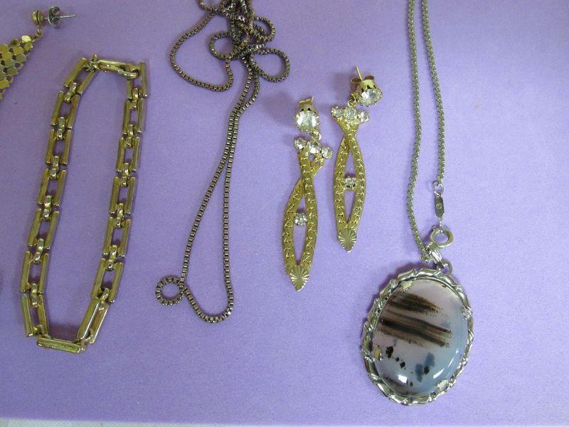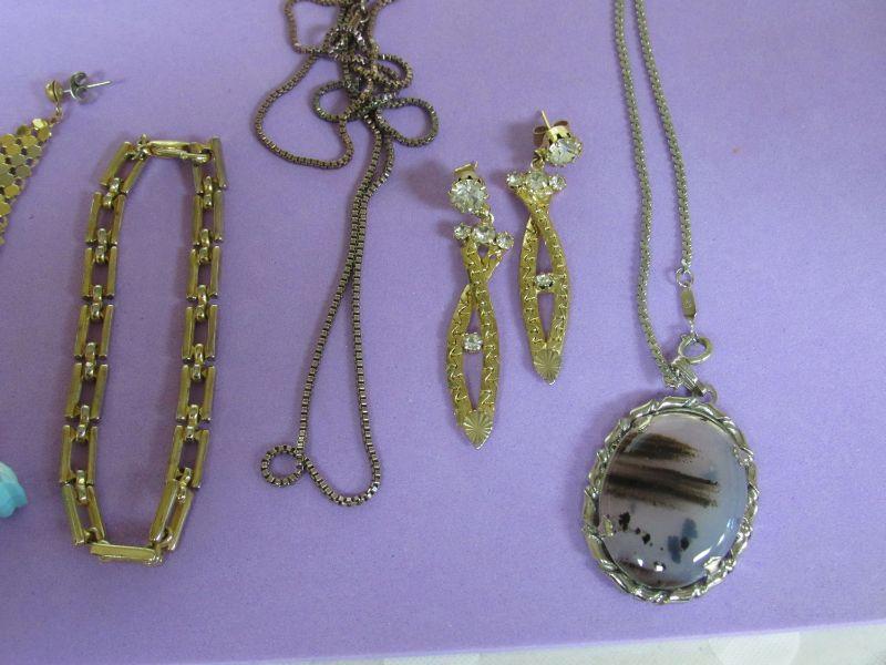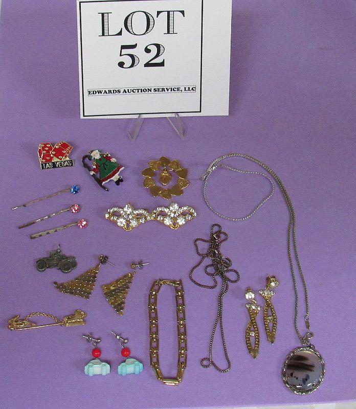 All are in overall good condition. There are earrings, pins, a bracelet, necklace, a sturdy box chain-unmarked, cute little car dangle earrings, more. Shipping is available on this lot at actual shipping cost plus a $5.00 handling fee.