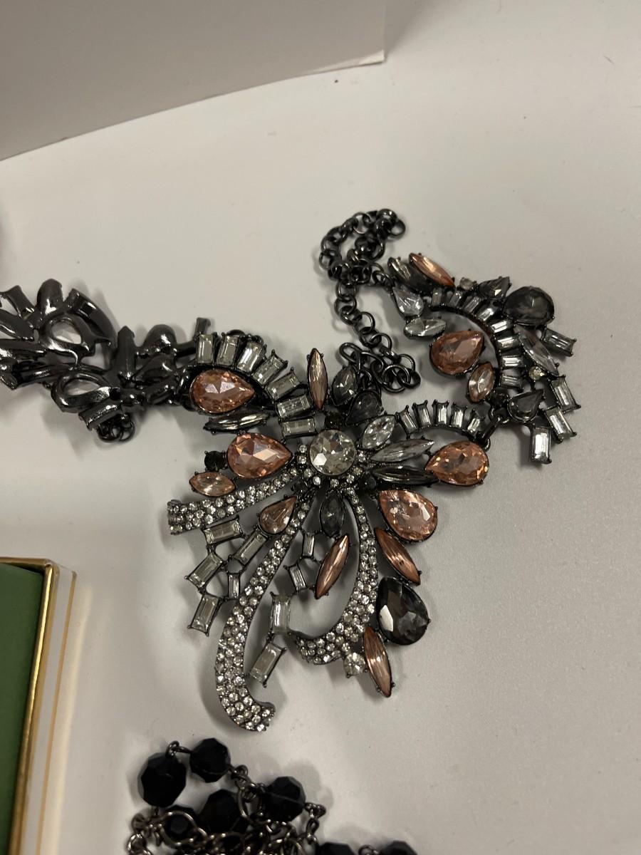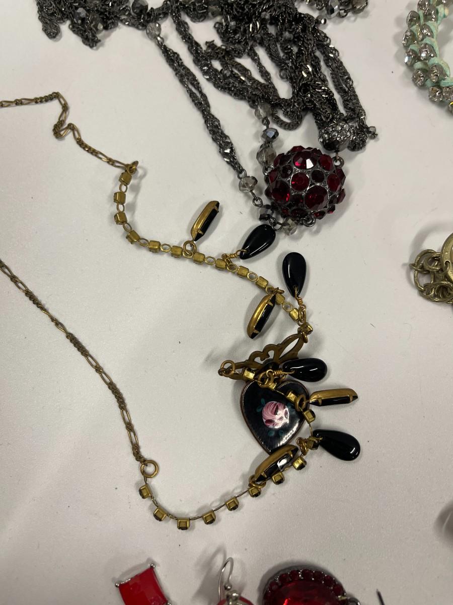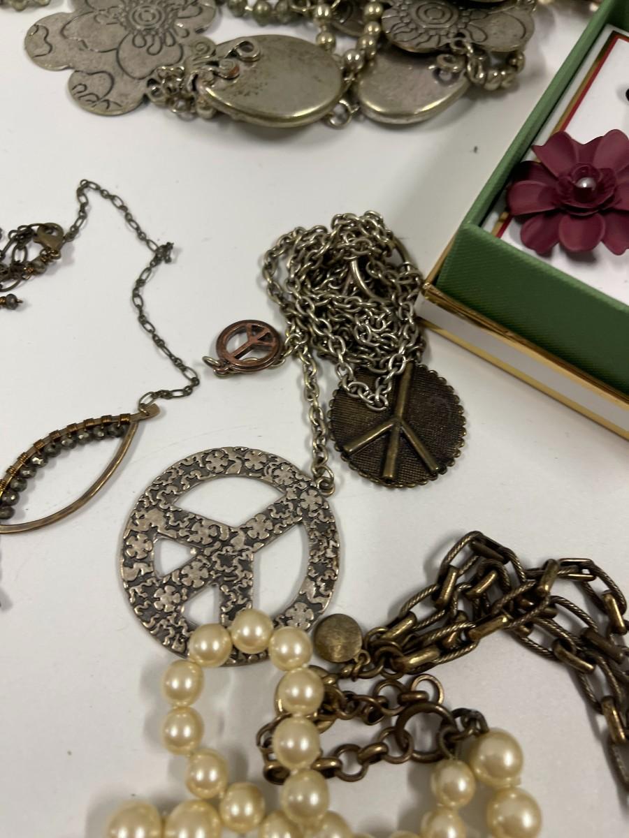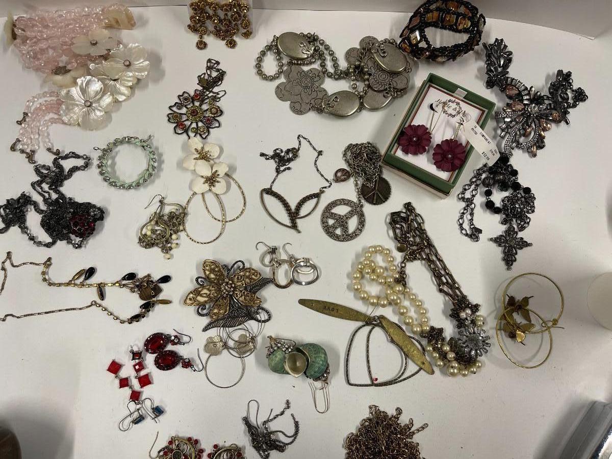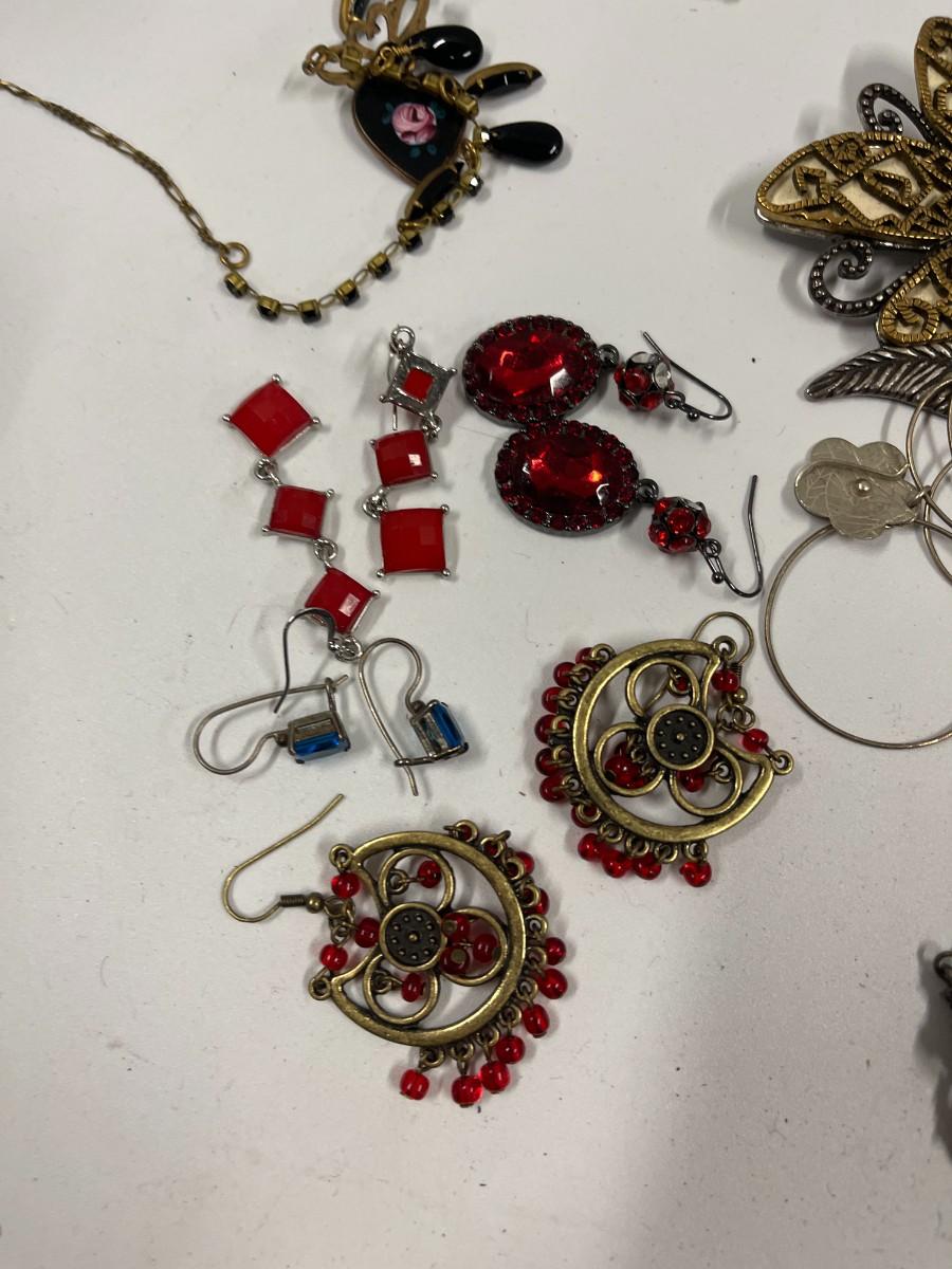Includes everything shown plus 2 additional necklaces. All earrings shown are in pairs. Nothing is broken.