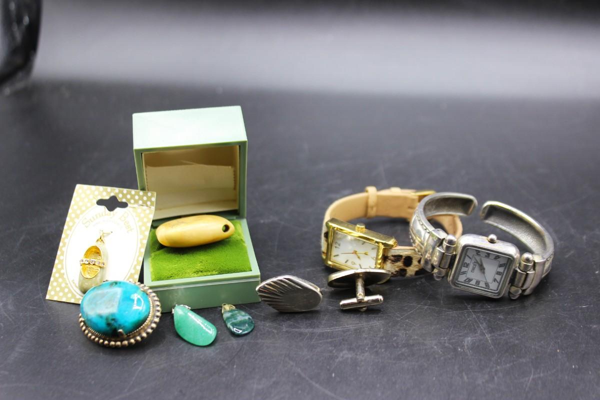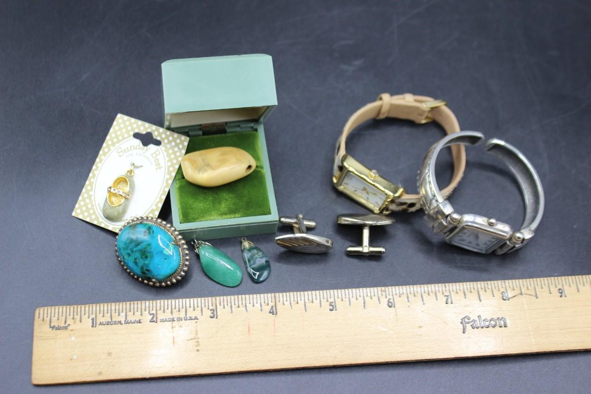 Lot of Costume Jewelry, Cuff Links, Watches, Gems & More