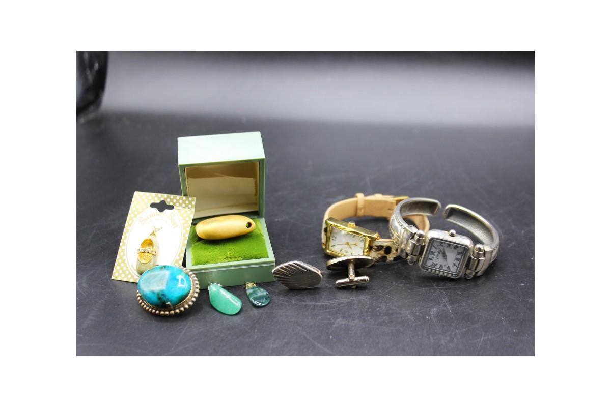 Lot of Costume Jewelry, Cuff Links, Watches, Gems & More, there is no significant damage to any of the pieces in the lot and is in good useable condition. Check pictures for more details and for sizing.