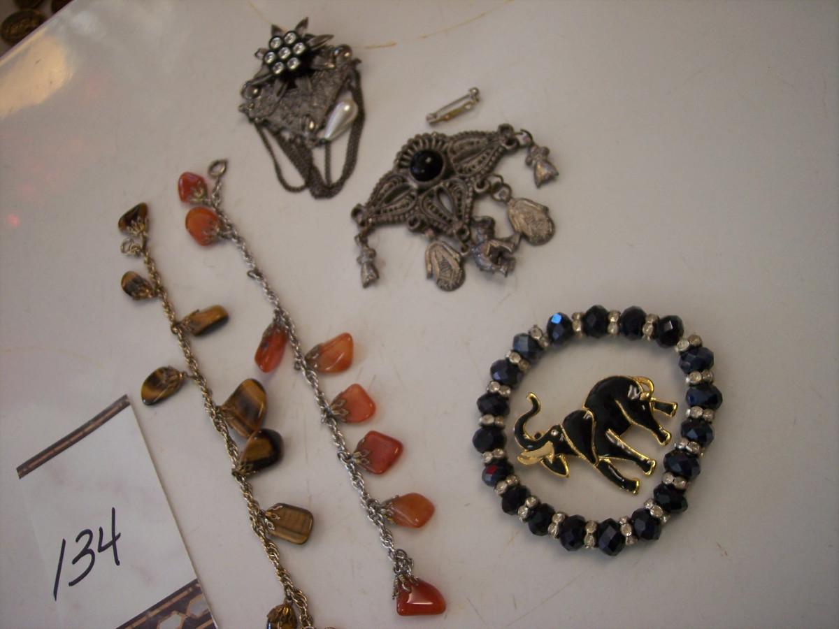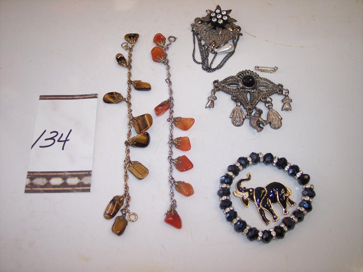 Lot of Costume Jewelry Elephants & Semi-precious stones