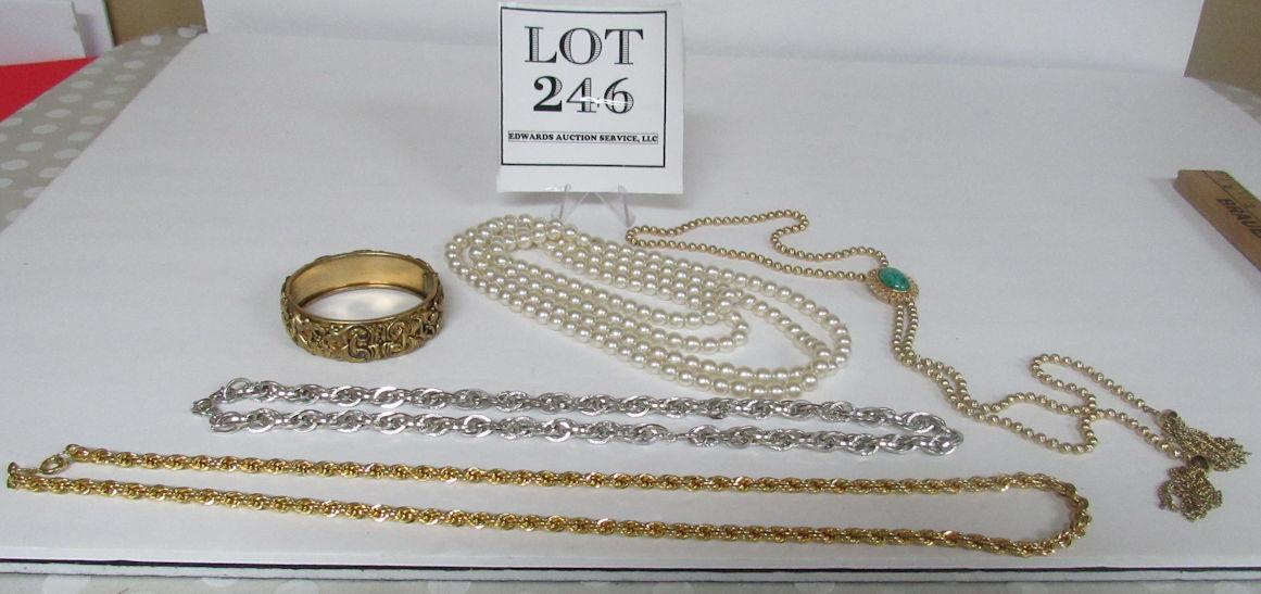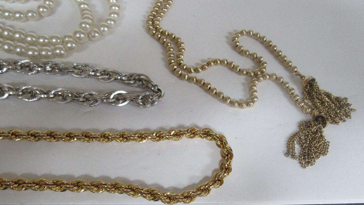 Lot of Costume Jewelry Fake Pearls, Avon Slider Chain, Necklaces, Lisner Bracelet