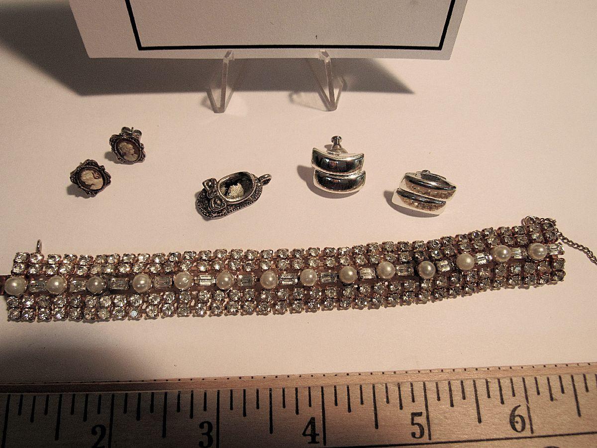 There may be replacement "pears" on the bracelet and some are discolored, as well as some rhinestones and metal. Shipping is available at shipping cost plus $5.00 handling fee on one box, $10.00 handling fee on two boxes, $15.00 handling fee on 3 boxes. Helps cover shipping materials and labor cost.