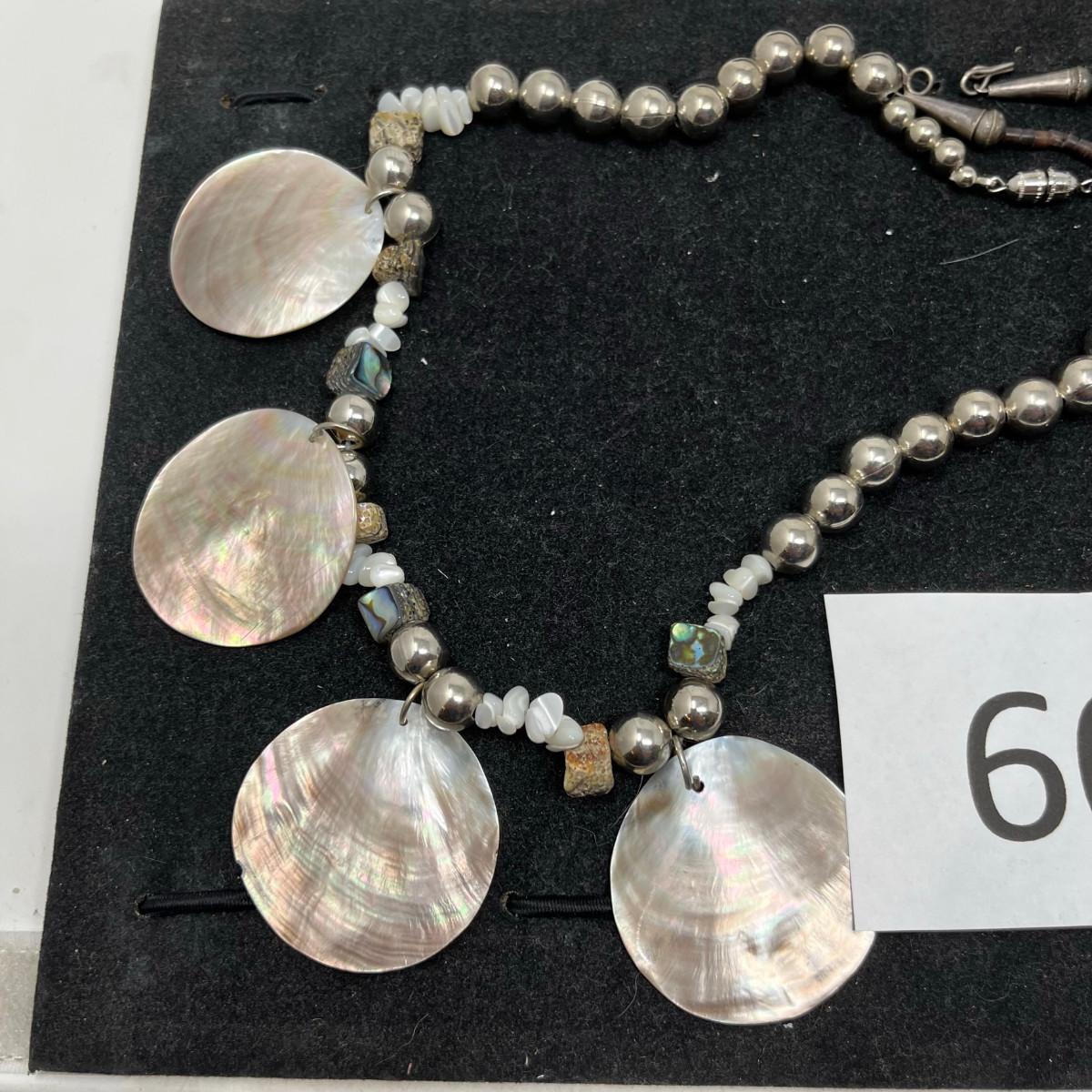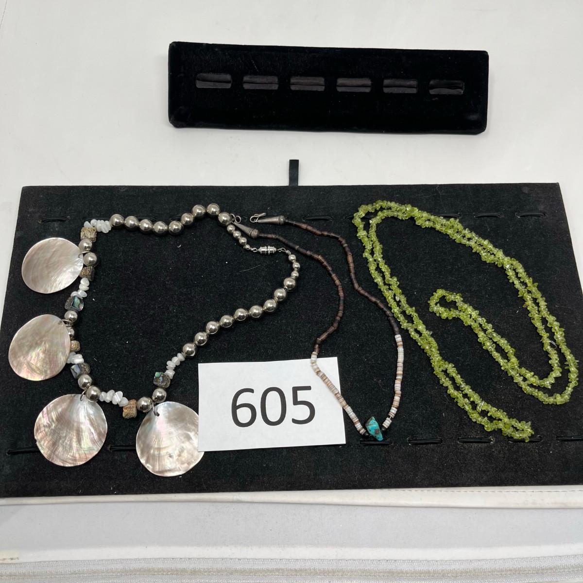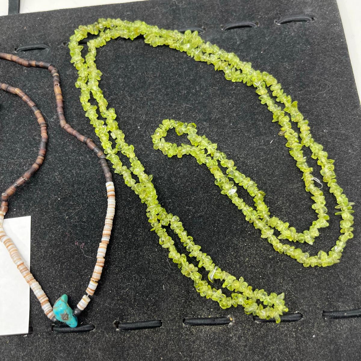 Very nice. The Heishe beads is cool. The green may be rough peridot.