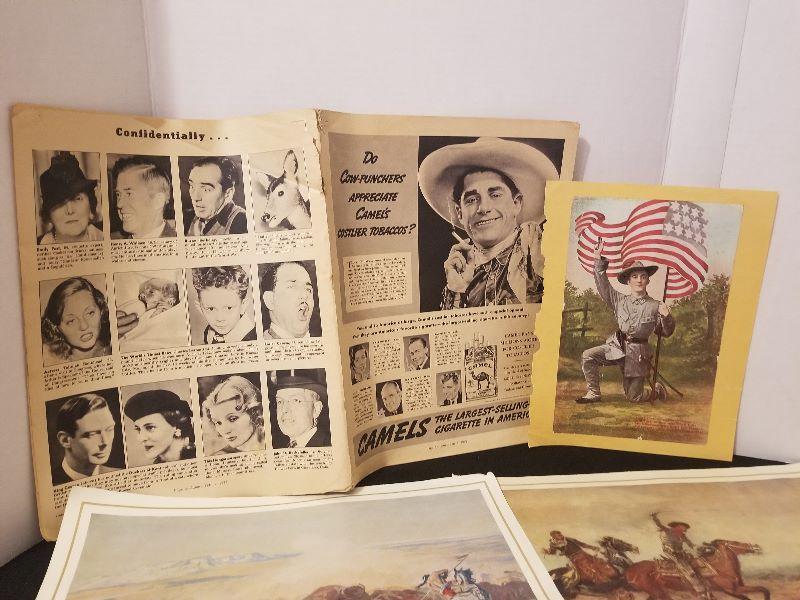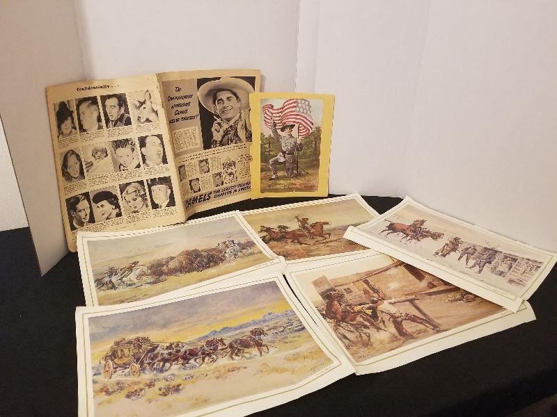 Lot of Cowboy Type Advertising Papers Camels CM Russell Calander Prints - #15-A