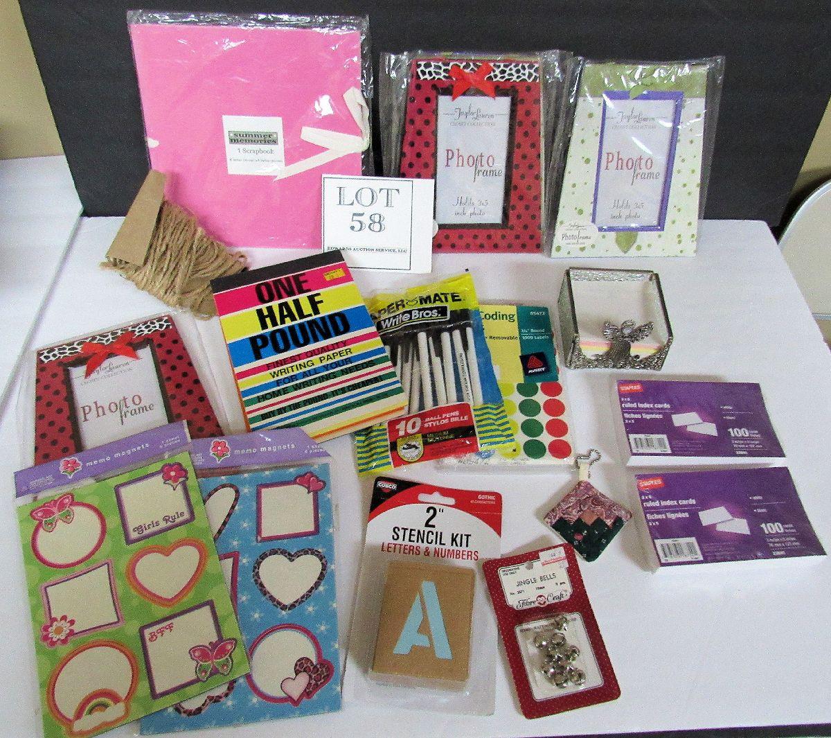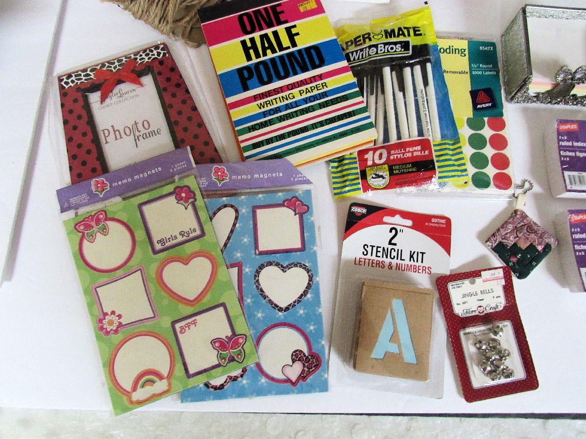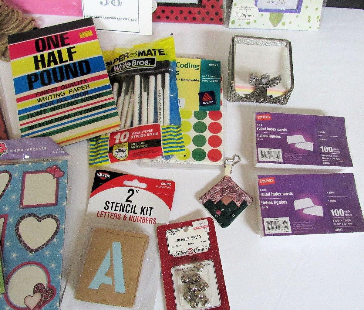 Lot of Craft and Decorative Items, Pens, Colored Paper, More