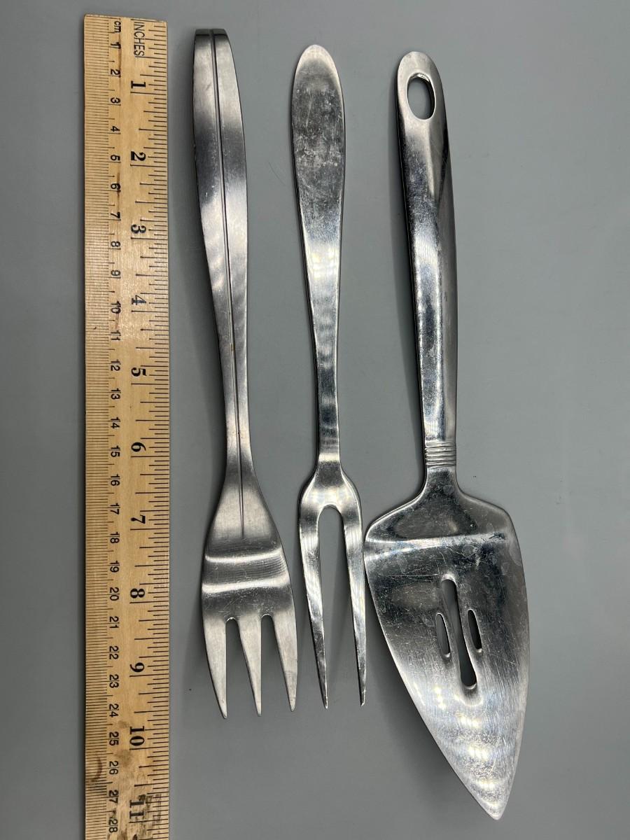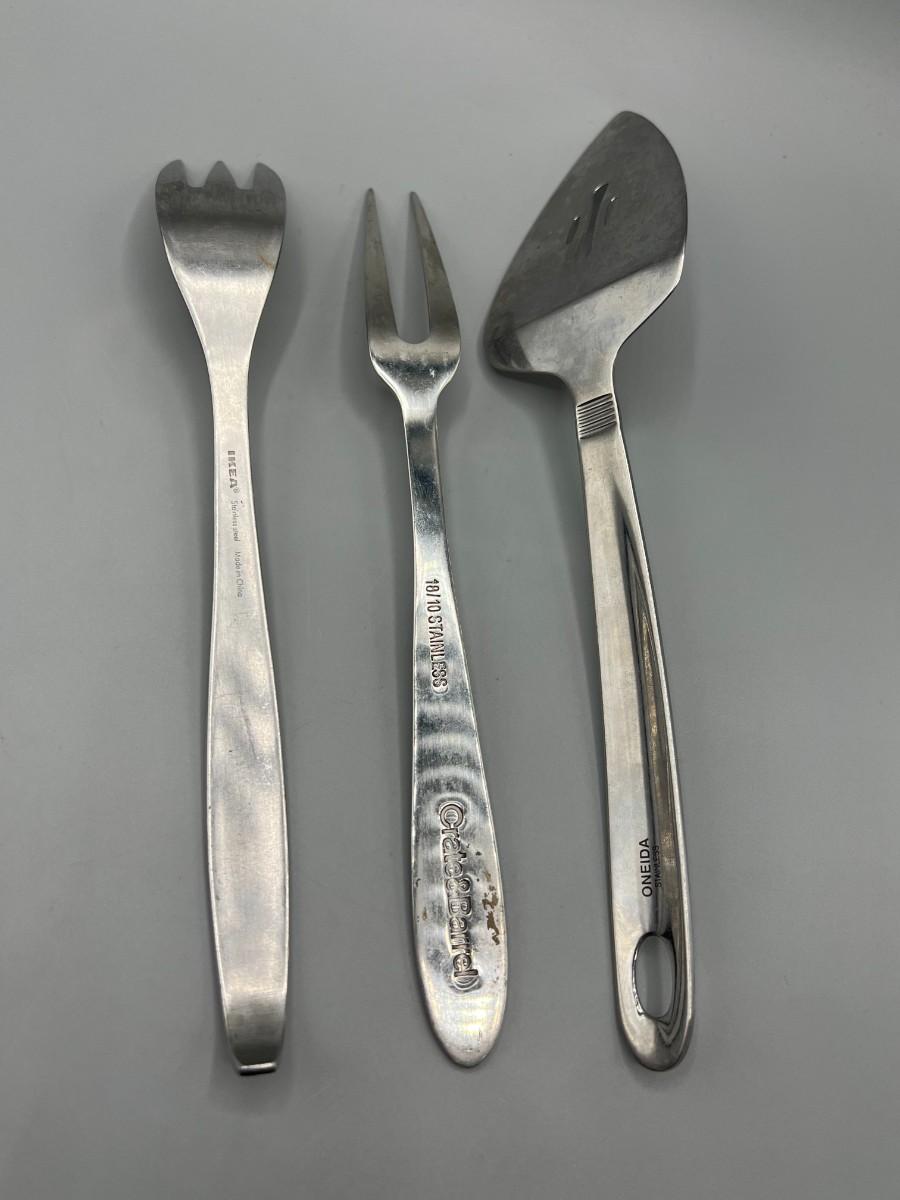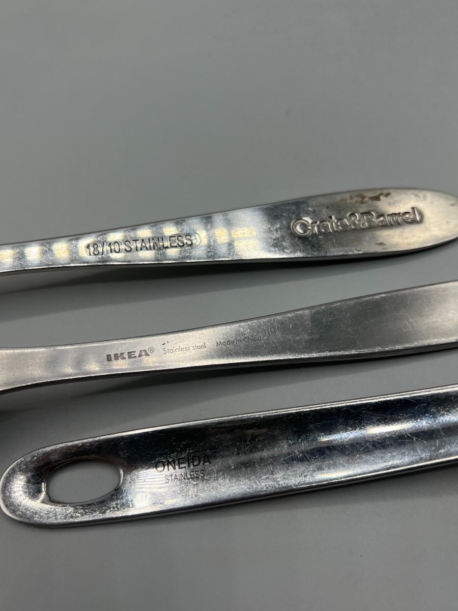 Lot of Crate & Barrel, Ikea, and Oneida Kitchen Bakeware Stainless Steel Utensils, there is no significant damage and is in good useable condition. Check pictures for more details and for sizing.
